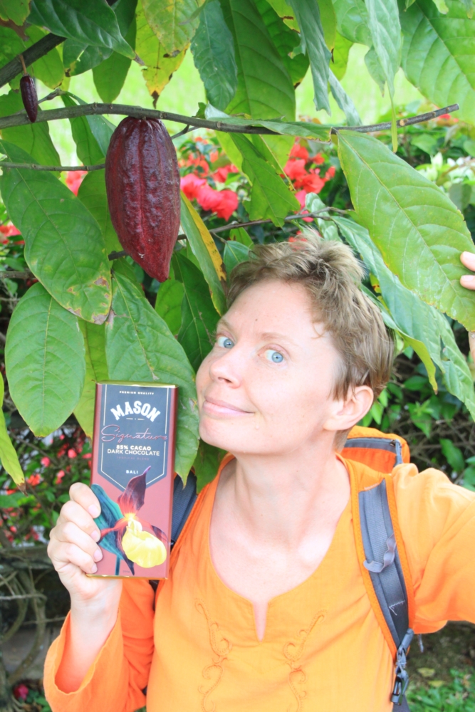 Там и правда есть что-то похожее на фабрику, но у нее нет своих плантаций и производство тоже стоит. Есть только шоурум с шоколадками, где можно попробовать образцы и что-то купить. Шоколад довольно вкусный, но цены — как в Европе, если не выше (50 тысяч рупий, или 3.5$ за 100 гр). За эти деньги можно закупать готовый шоколад в Швейцарии, привозить его на Бали и еще наварить сверху.