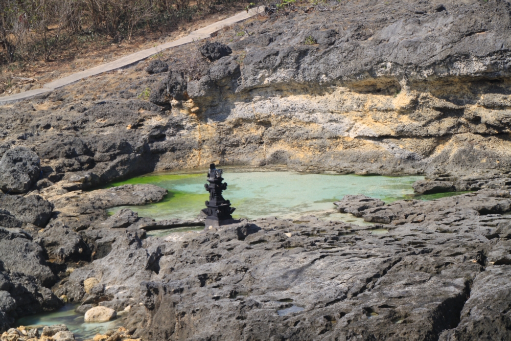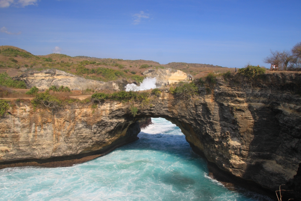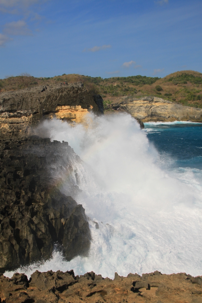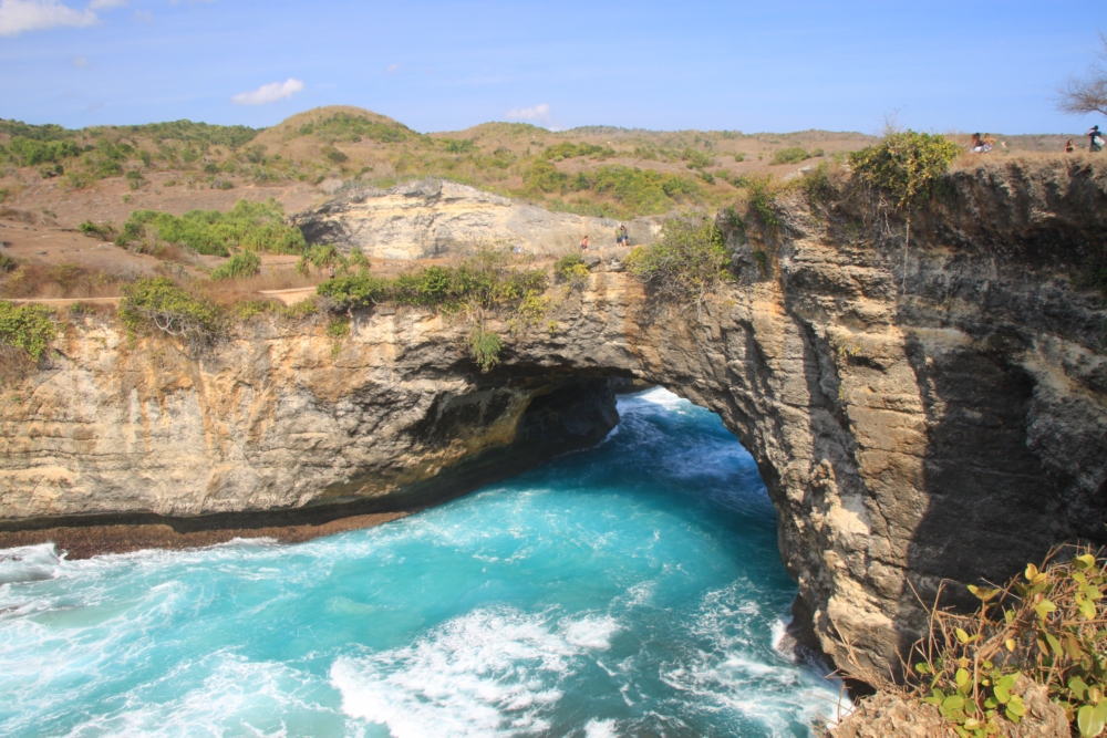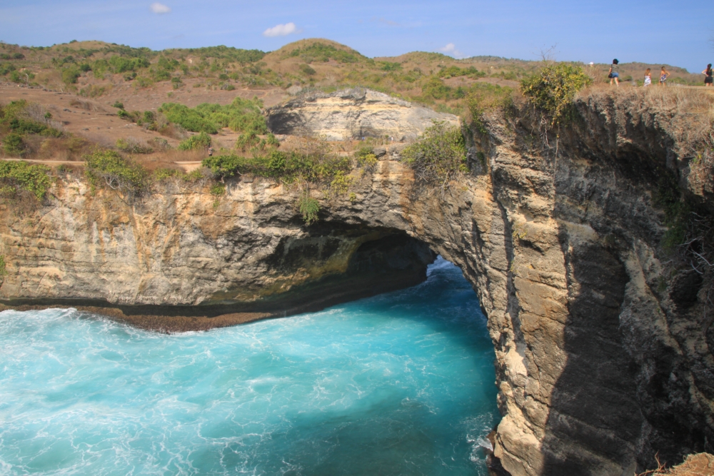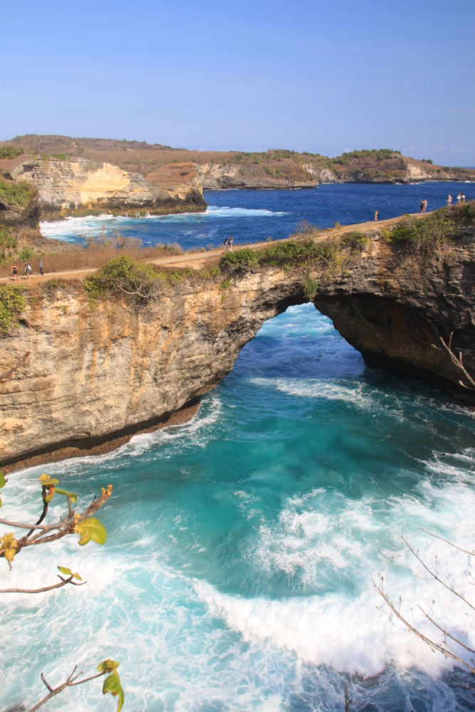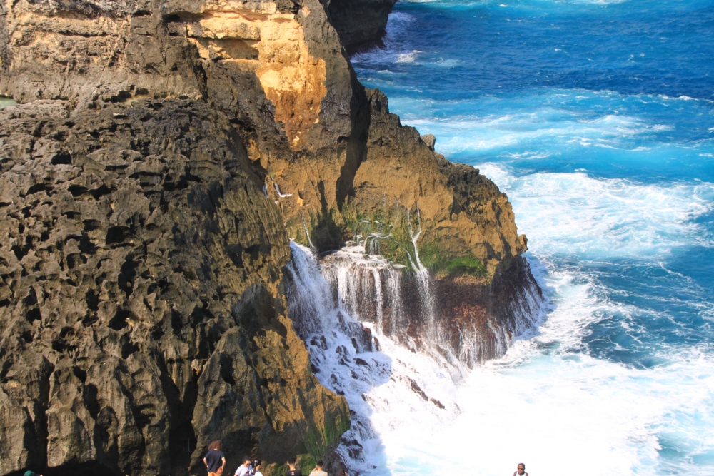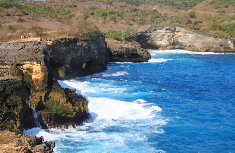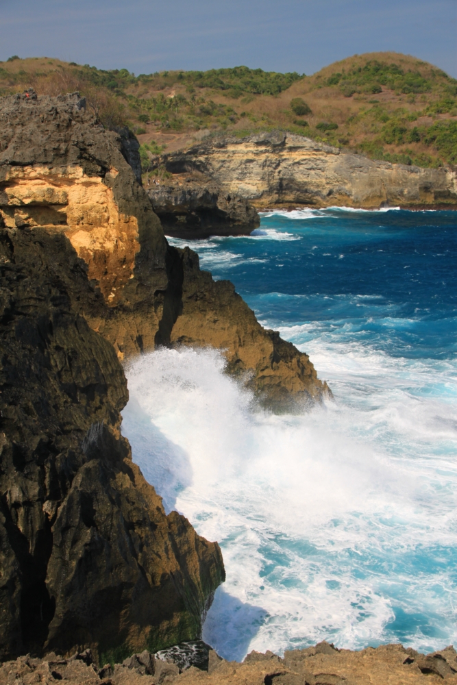 Между тренировками по фридайвингу и попытками увидеть скатов мы ездили по Нуса Пениде на скутере к разным красивым местам. Возле нашей деревни Пед берег острова был плоским. Зато на другом конце острова он круто поднимался и превращался в драматические скалистые обрывы.