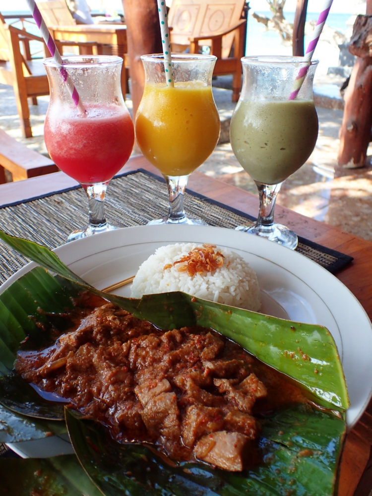 Действительно вкусно было лишь на Нуса Пениде, где нам повезло найти новый ресторан Penida Minang Richard resto and bar (мы звали просто Minang beach). Он находится в Педе на набережной, практически напротив школы фридайвинга. В нём помимо всех этих традиционных горелых рисов готовят несколько интернациональных вкусных блюд. Или просто у них хороший повар, редкость в тех краях. Ресторан не самый дешевый, поесть на двоих тут стоит 210–250 тысяч рупий (15–18$)