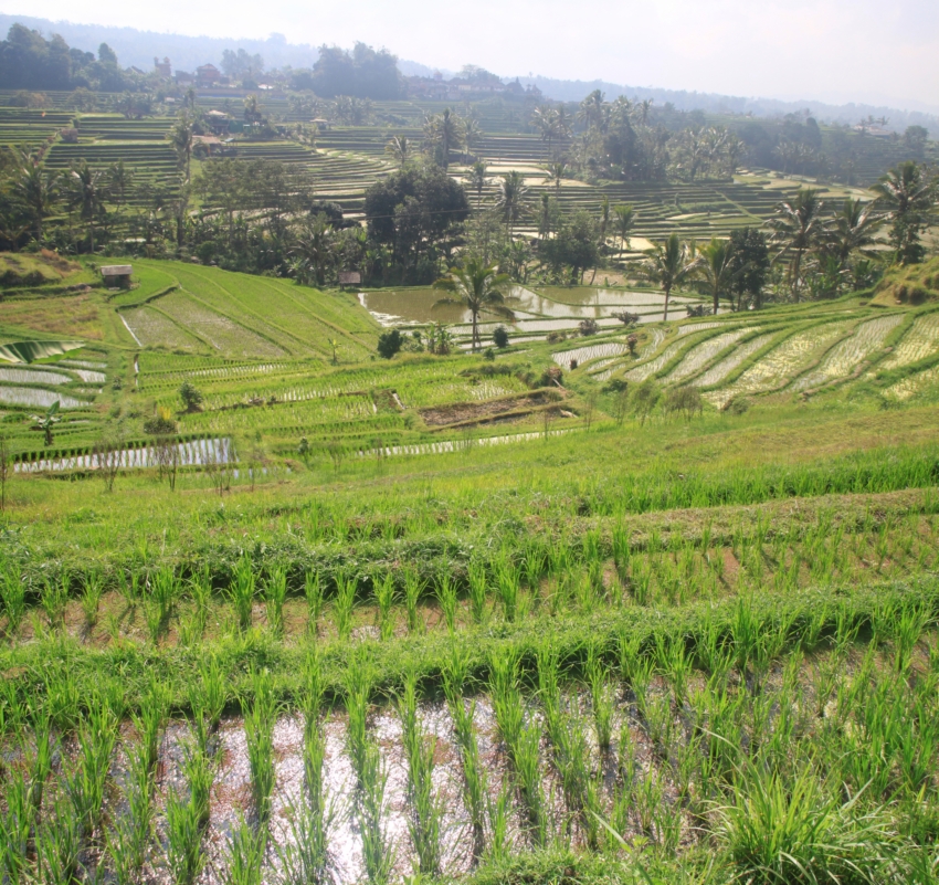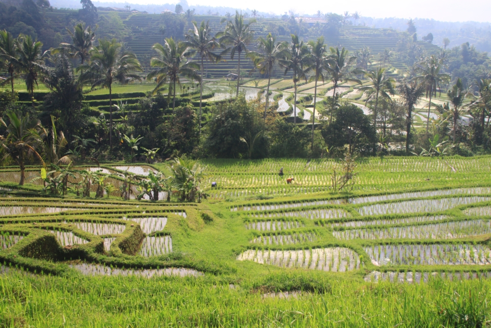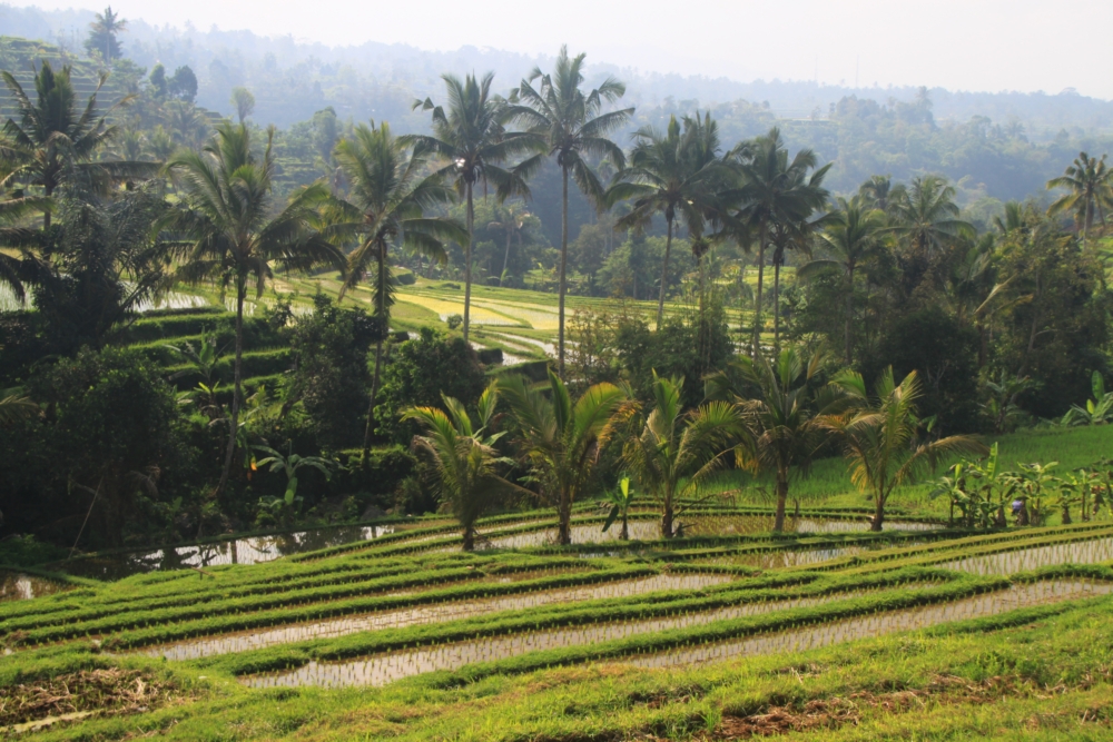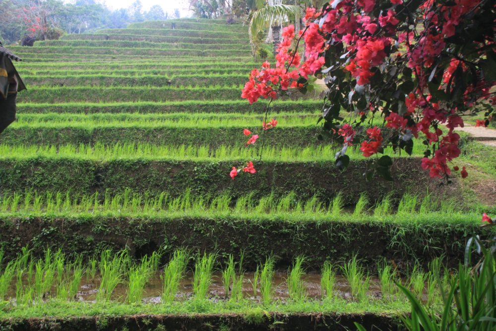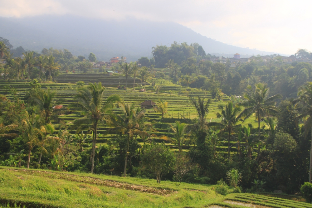 Вот тот пейзаж, который я хотела увидеть. За счет большого количества воды, которую собирает над островом высокий вулкан Агунг, в сухой сезон рис тут тоже растет. Воды хватает круглый год.