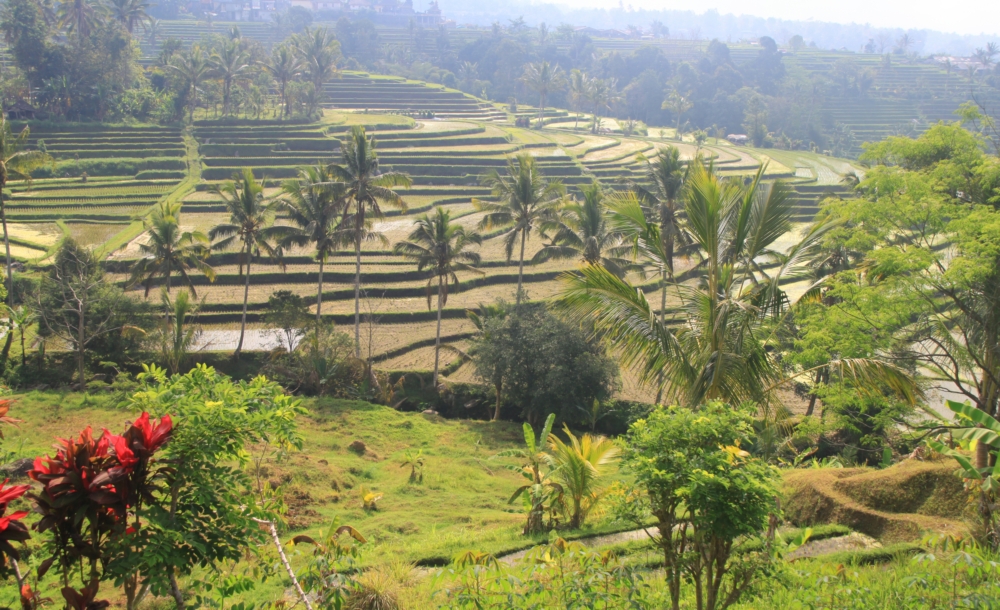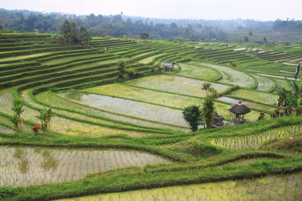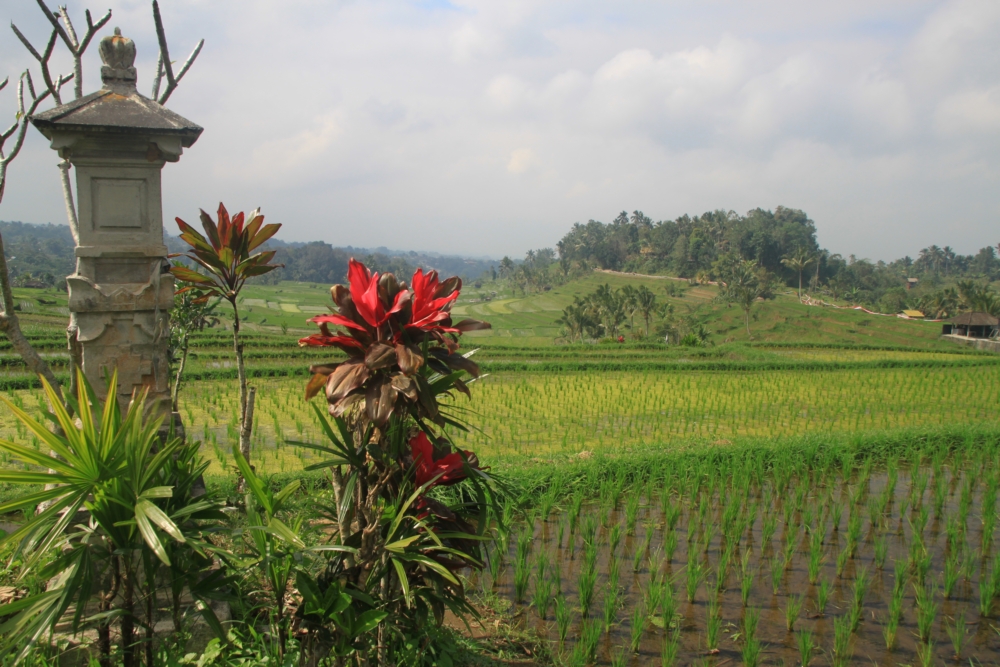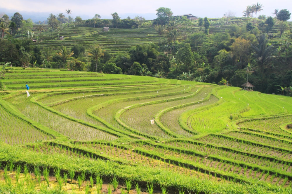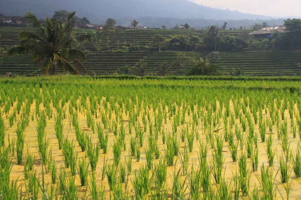 Вот тот пейзаж, который я хотела увидеть. За счет большого количества воды, которую собирает над островом высокий вулкан Агунг, в сухой сезон рис тут тоже растет. Воды хватает круглый год.