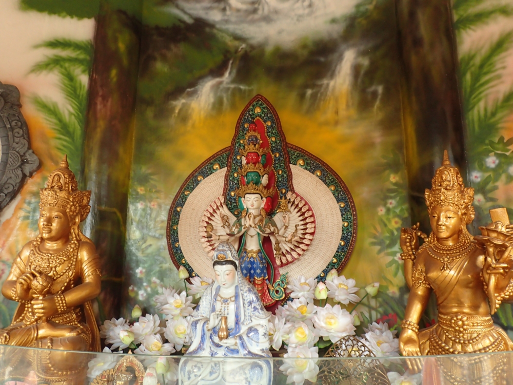 Здесь совершеннейшая эклектика тайской, китайской и даже тибетской традиции буддийского изобразительного искусства, с некоторыми балийскими элементами.