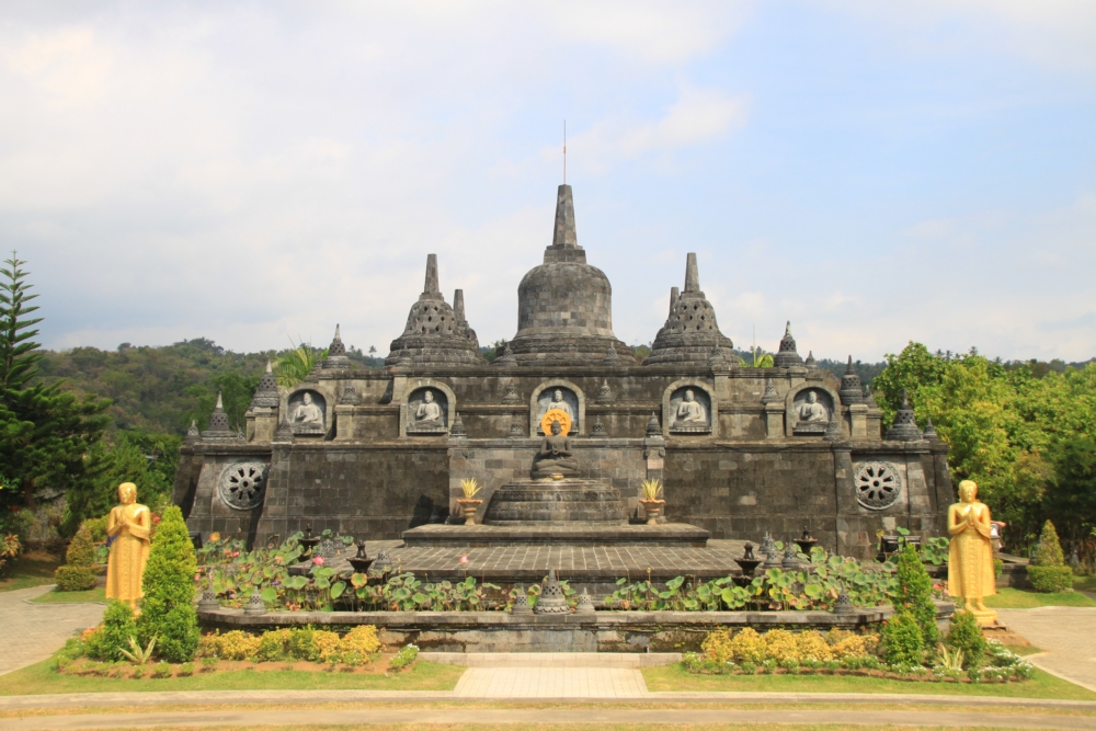 Буддизм для Бали не характернен, зато на Яве есть буддийский храмовый комплекс Боробудур 8–9 веков н.э. И вот в новом балийском храме построили небольшую реплику Боробудура, а заодно и ретритный центр.