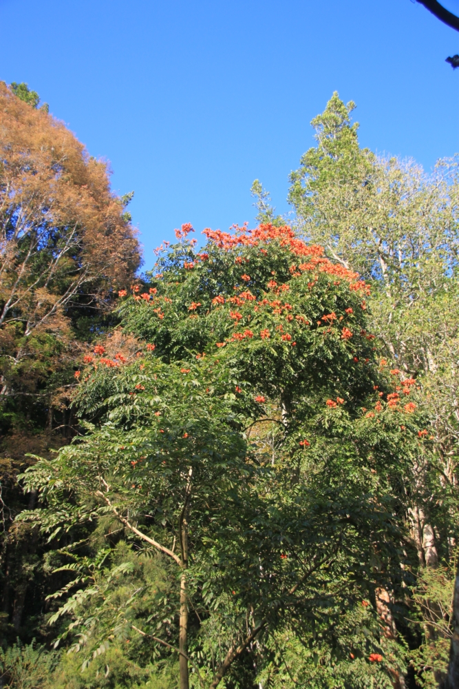 Лес очень красивый, с большими деревьями и листьями удивительных форм.