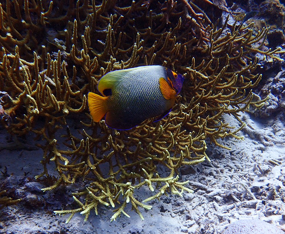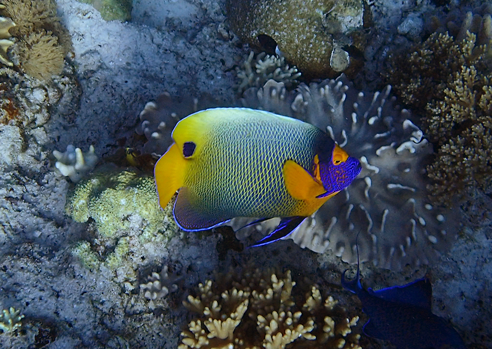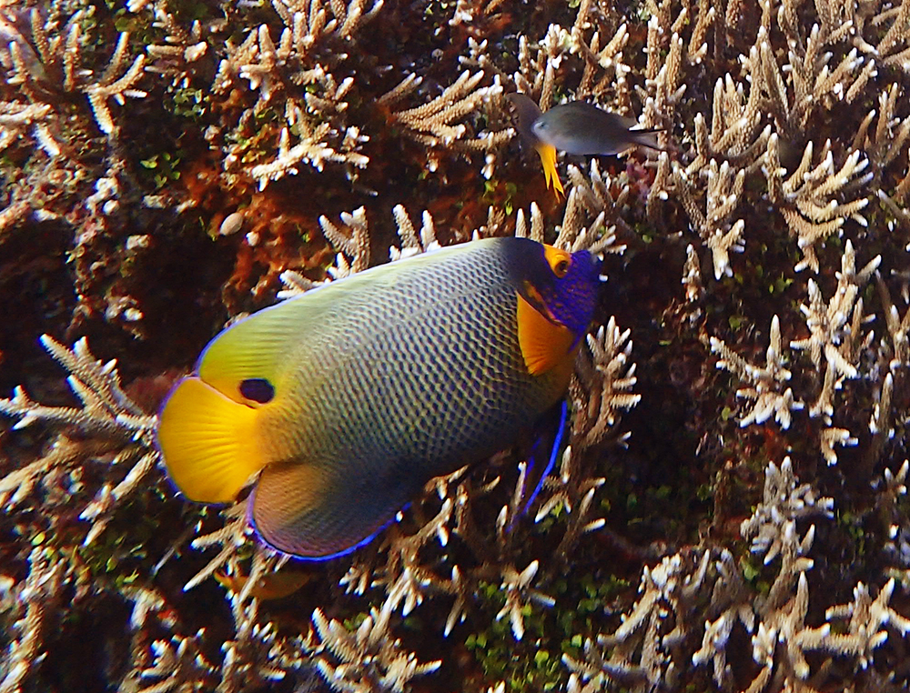 Один с рыжими плавниками. Жёлтомасковый ангел называется.
