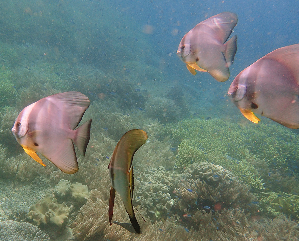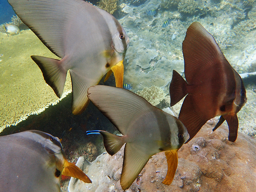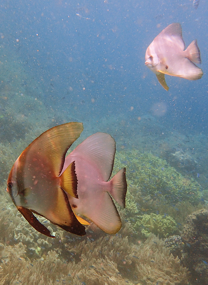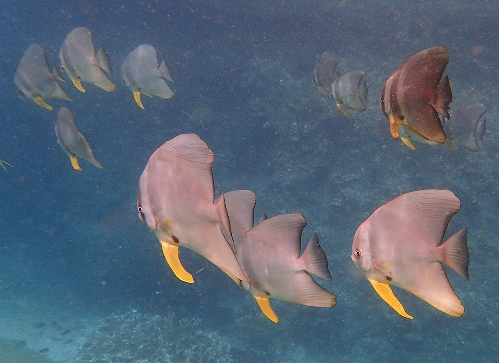 Платаксы — рыбы смелые, ныряльщика не боятся. Иногда они даже сопровождали нашу группу во время ныряний. Им казалось, что это такая большая стая рыб.