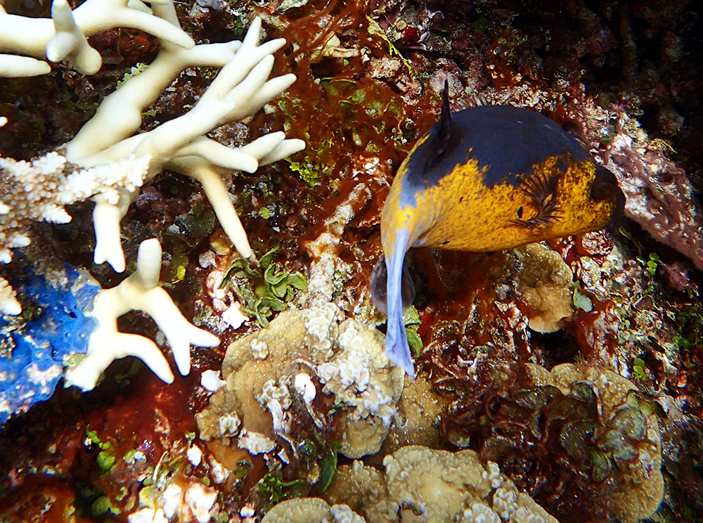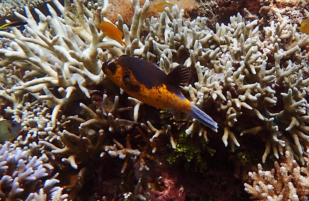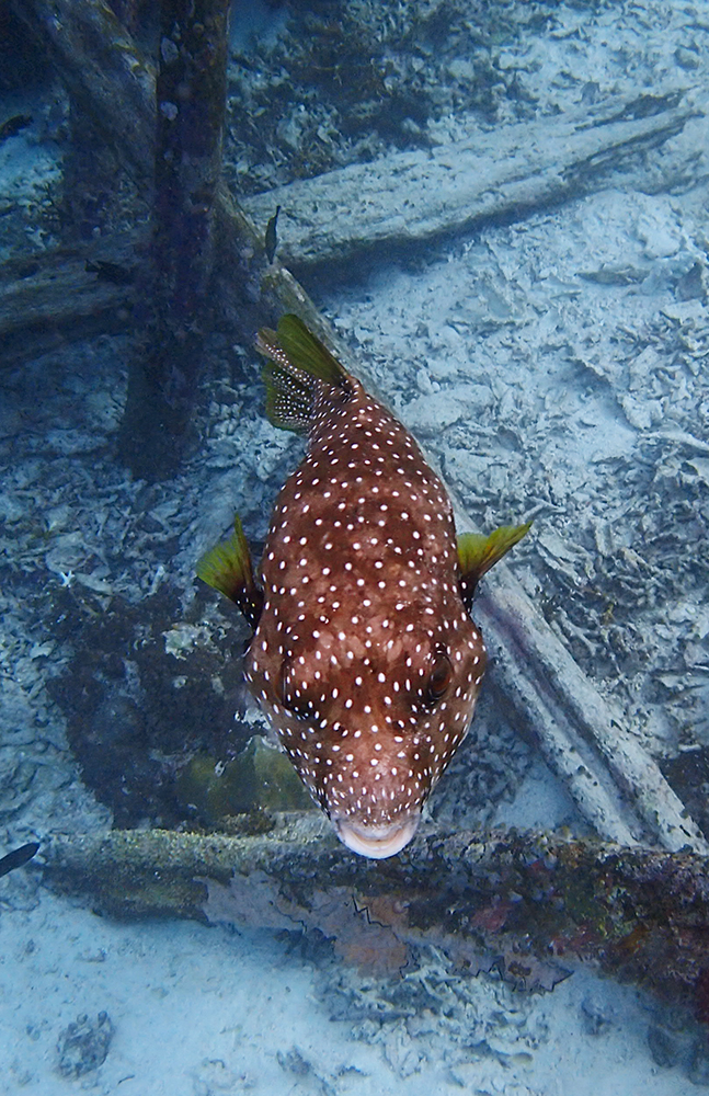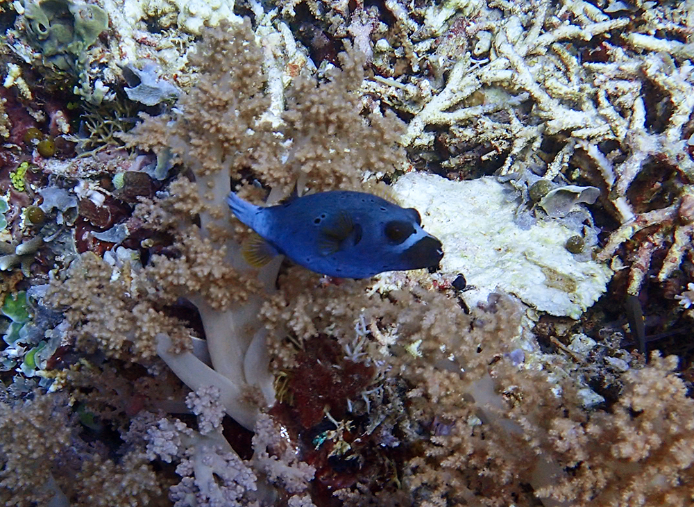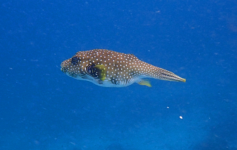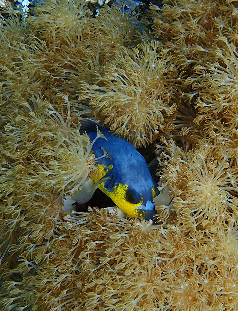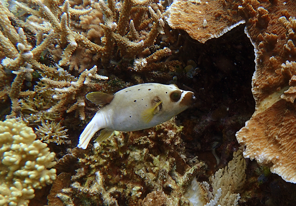 Очень забавная рыбка паффер. Ее еще зовут Dogface — «собачья морда». Бывает разных цветов.