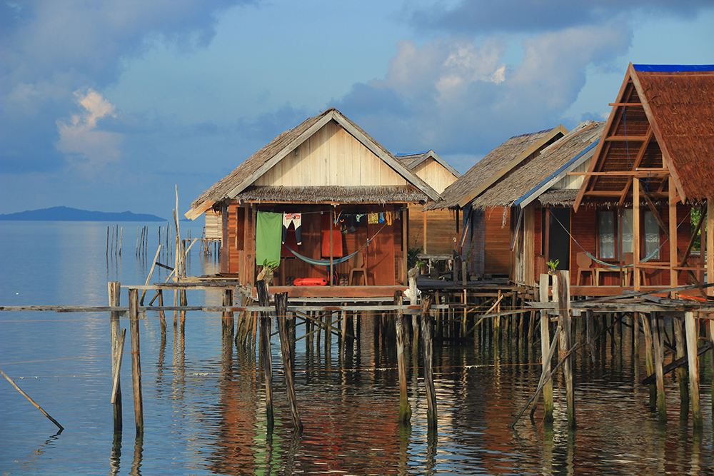 Это были совсем папуассокого вида домики на сваях. Без ванной, удобства вообще были отдельно на берегу.