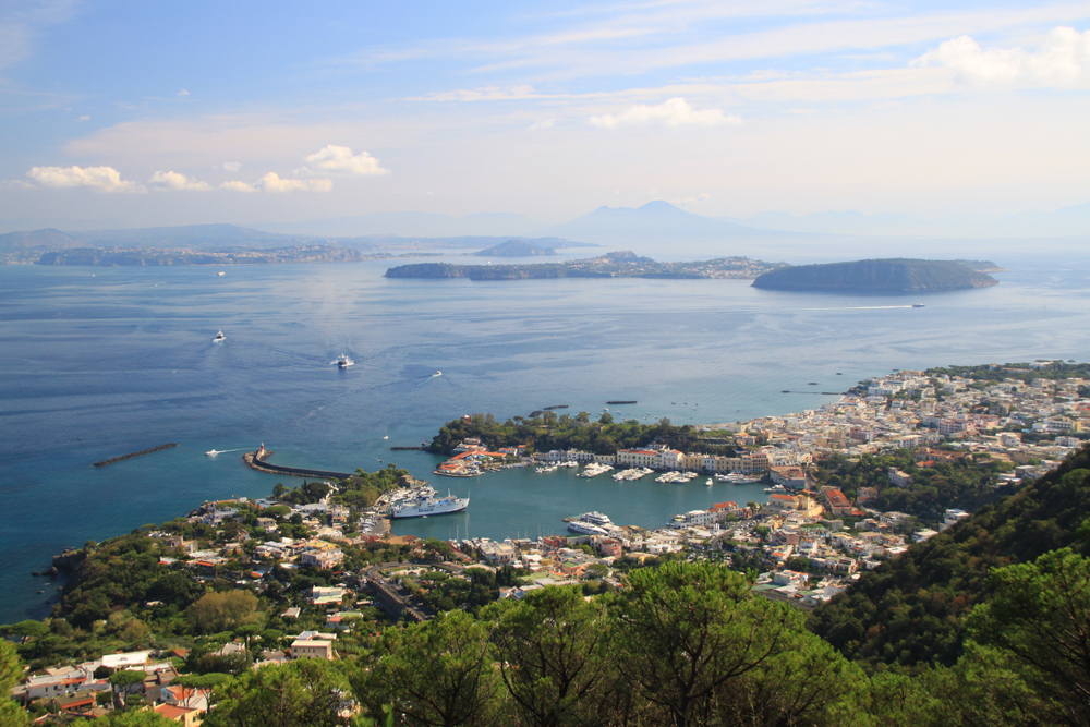 Вид на Искья-порто с горы Монте Ротаро:
