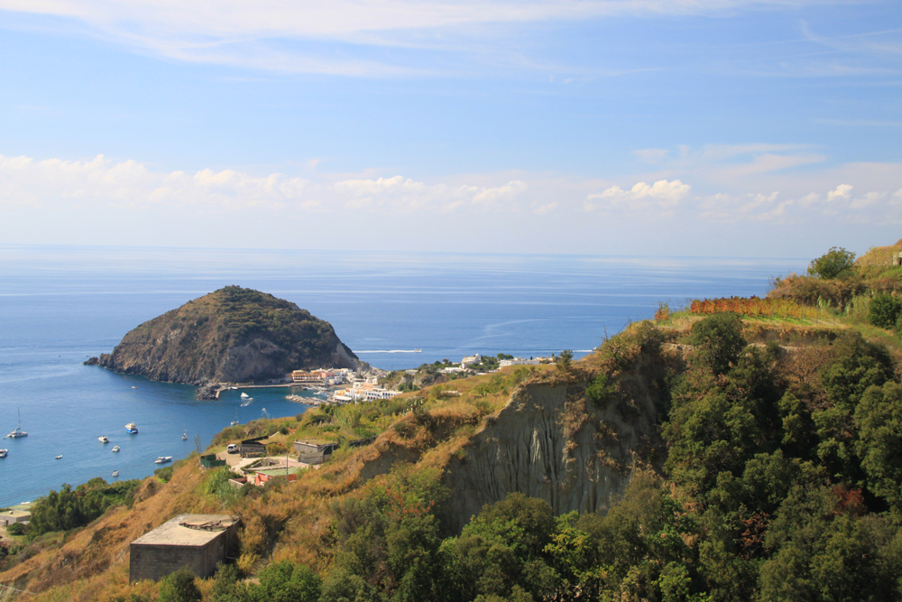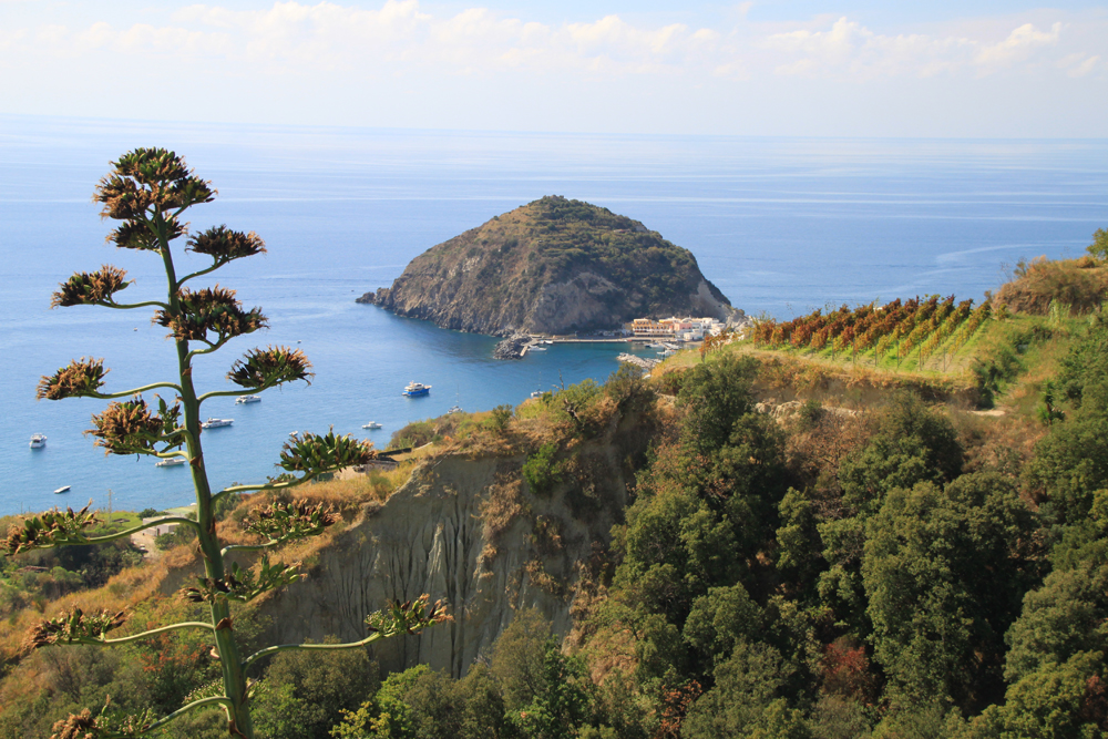 Вдалеке на перешейке виден Сан-Анджело. Поближе — чей-то виноградник.
