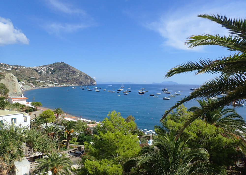 Поэтому мы вышли на пляж и пошли в сторону Сан-Анджело. Пляж тут длинный и, кажется, вообще самый большой на Искье. Песок серый, местами переходит в мелкую гальку.