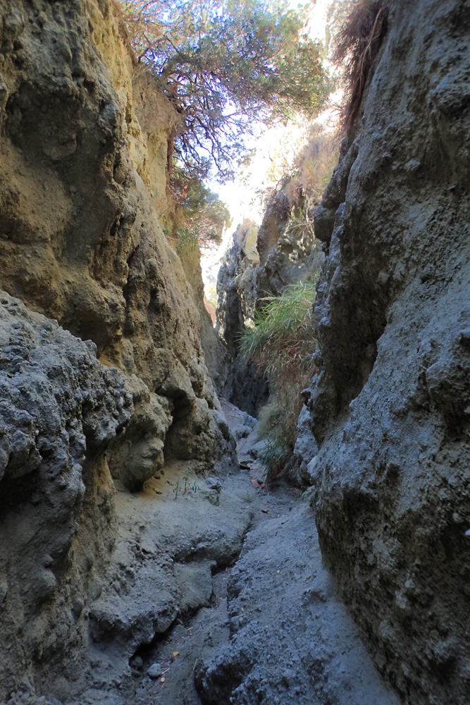 Маршрут кончается в Кава Скура. Это термы, вроде как там можно купаться, но место совершенно нефэншуйное, там особо и бассейнов-то не видать — узкий пыльный участок внизу ущелья.