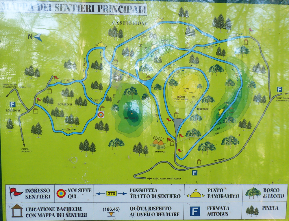 Чтобы попасть в этот лес, надо выйти на автобусной остановке, которая находится сразу за термальным парком Кастильоне (если ехать от Искья-порто). Поскольку рядом расположен термальный парк, после прогулок можно идти купаться.