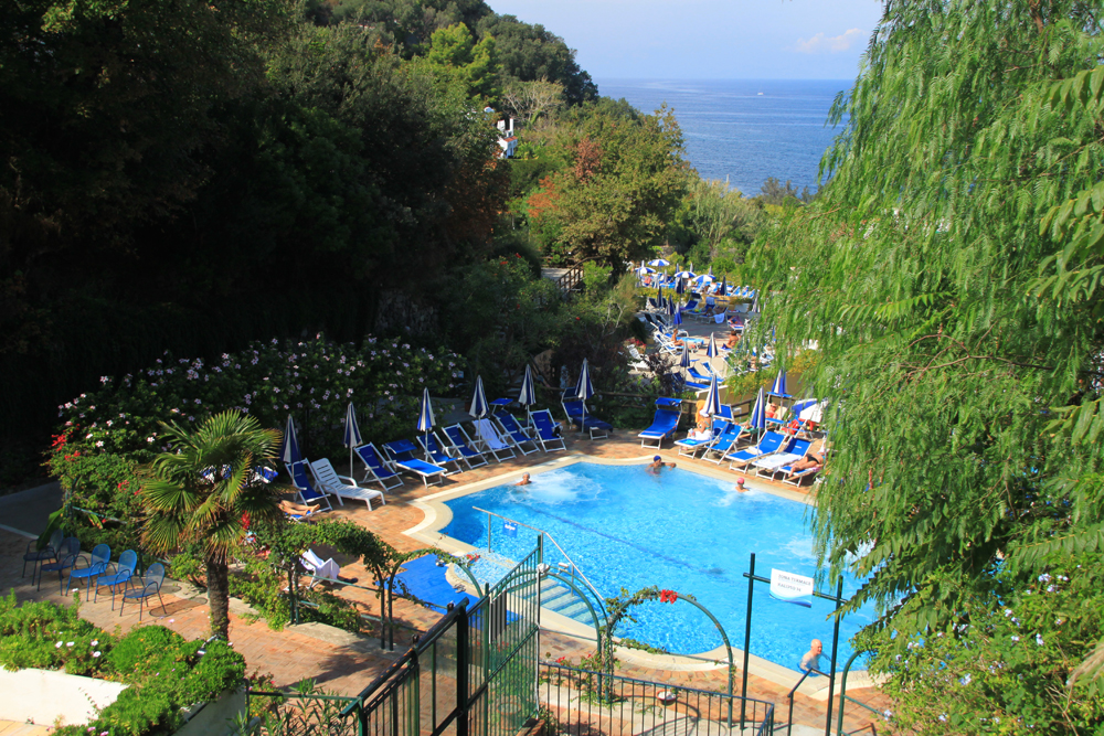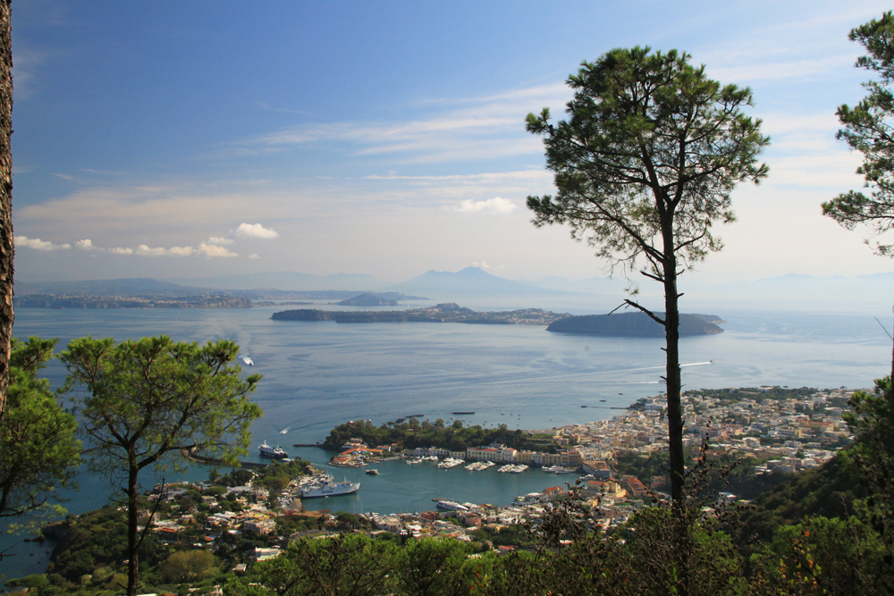 Слева есть смотровые площадки с видом на Искья-порто, а в середине — кратер потухшего вулкана с лесом внутри.