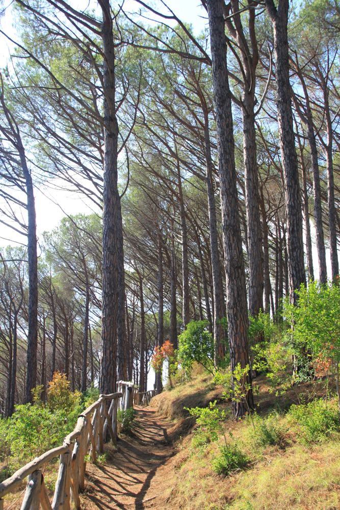 Дорожки хорошо оборудованы, лес на горе светлый и состоит в основном из пиний.