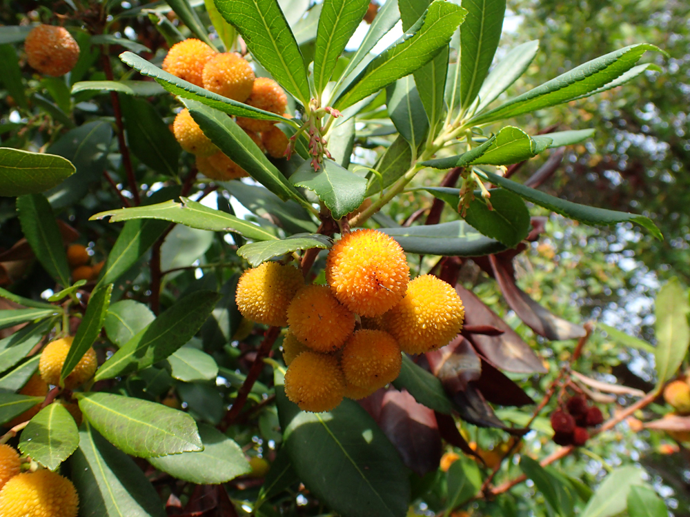 Эти ягоды мы точно где-то видели. Их едят в Китае и даже делают из них мармелад. В спелом виде они красные, чуть сладковатые. Росли возле одного из бассейнов.
