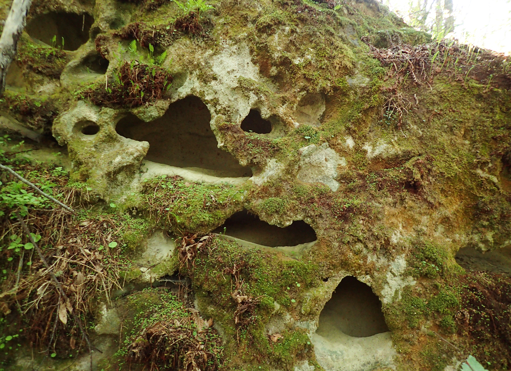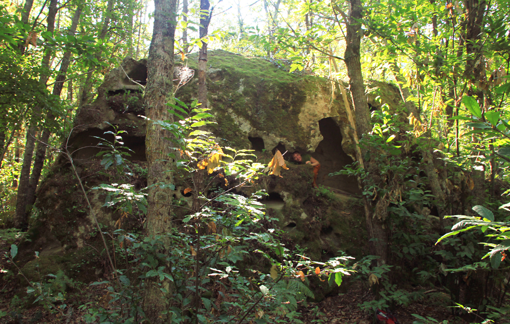 В лесу попадаются скалы с забавными дырками. Конечно же, я залезала в них.