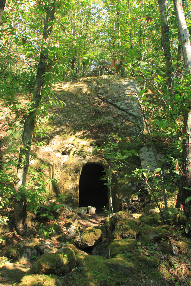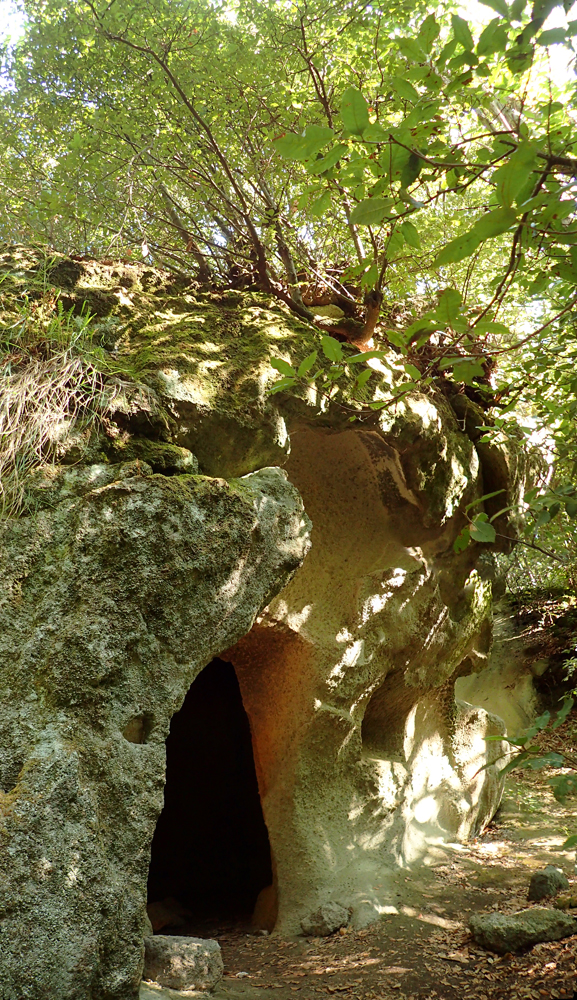 Целая комната внутри, с очагом, лавкой и крестом. Наверное, тут жили отшельники, каштанчики пекли, тем и питались.