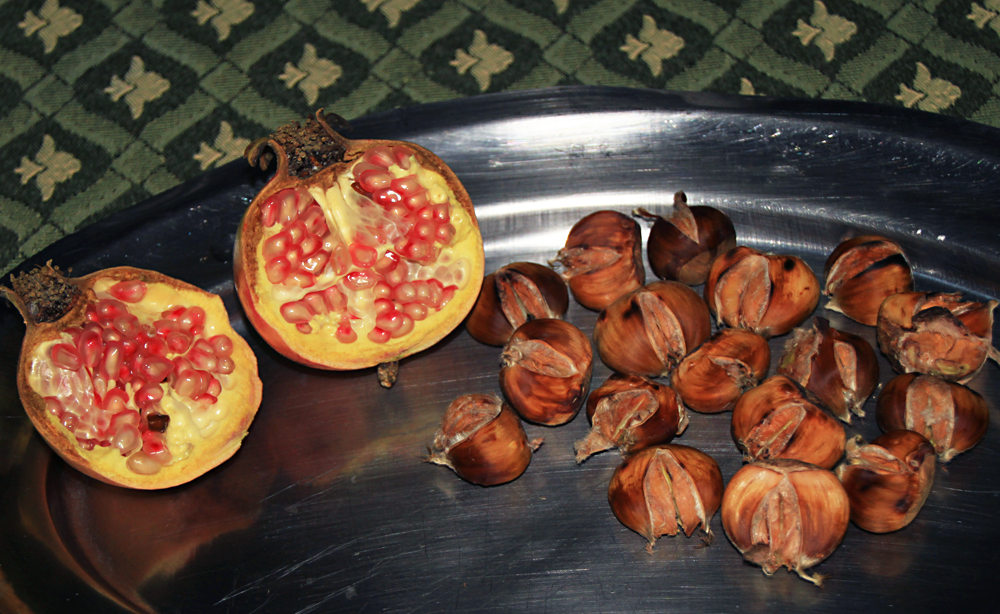 Наша добыча. Каштаны запекли на сковородке-гриль, прикрыв сверху железным подносом.