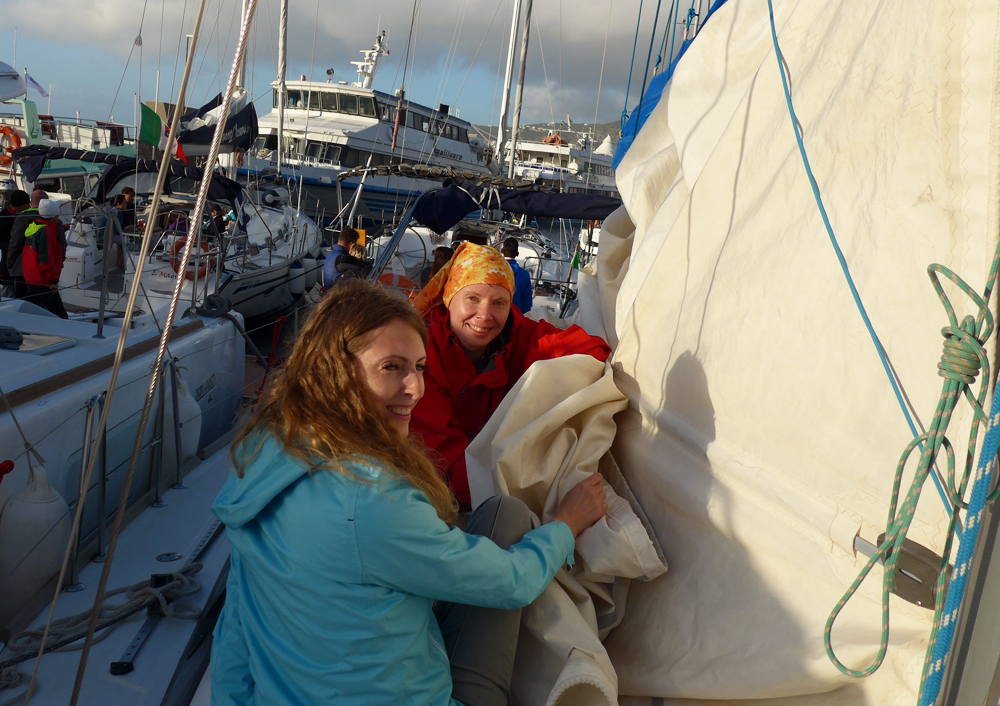 Из всего нашего женского состава у нее был наиболее богатый яхтенный опыт и она все умела. Поэтому она помогала там, где это было необходимо. И очень умело подчеркивала все позитивные моменты происходящего :-)