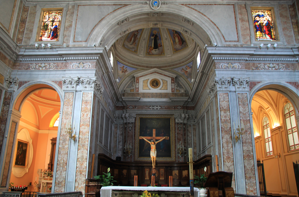 На переднем плане — веселая жизнь итальянских горожан 19-го века.