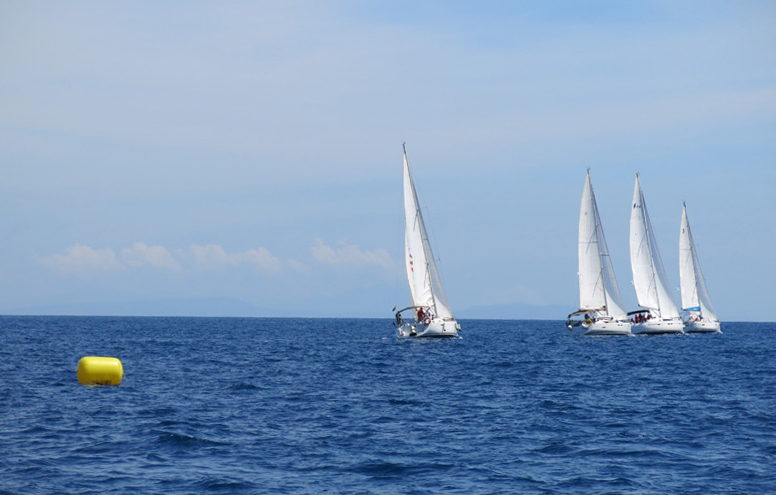 Судьи ставят в воду два больших желтых буя, яхты делятся на два дивизиона (первый — яхты со спинакером, второй — без, это мы). Дальше следует приказ заглушить мотор — и понеслось.
