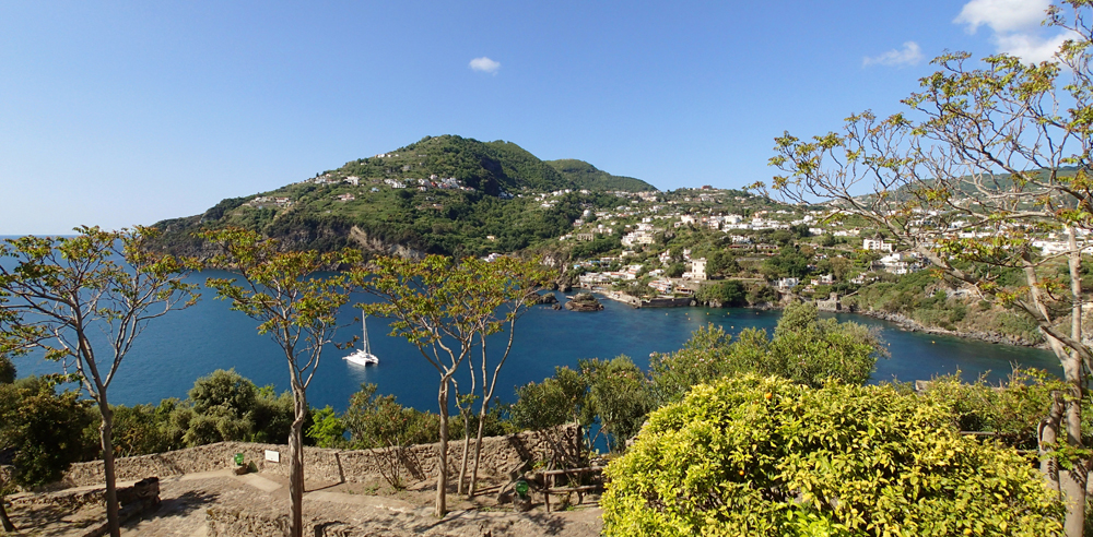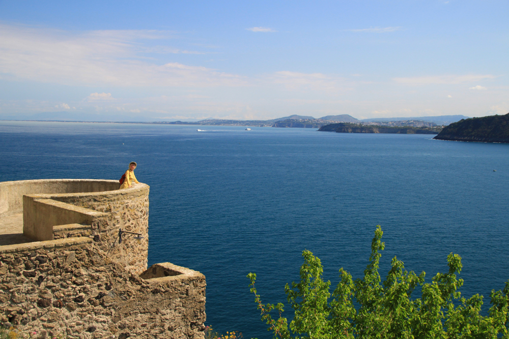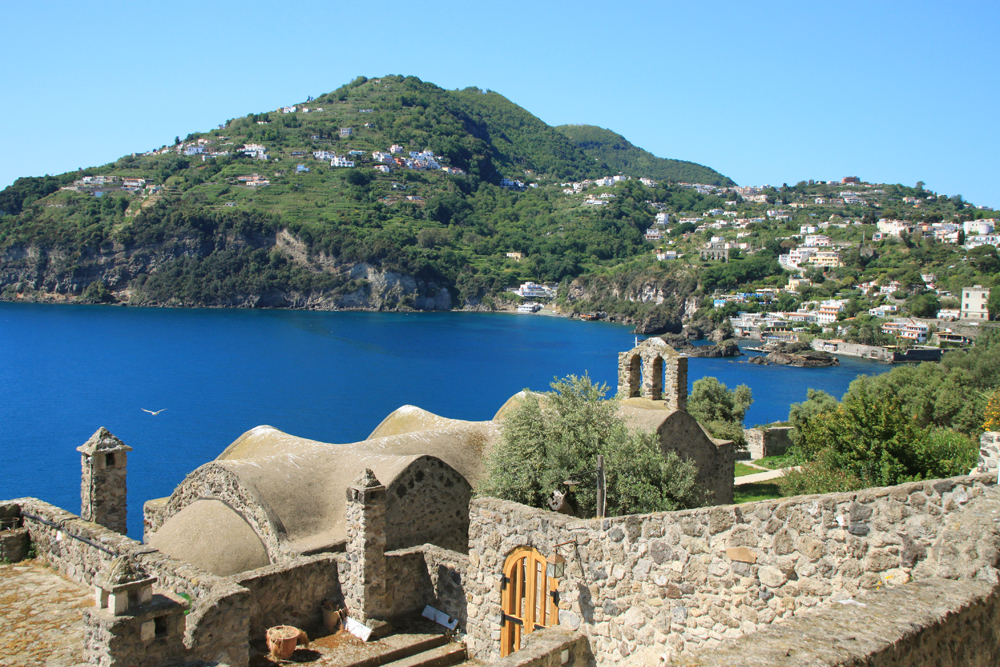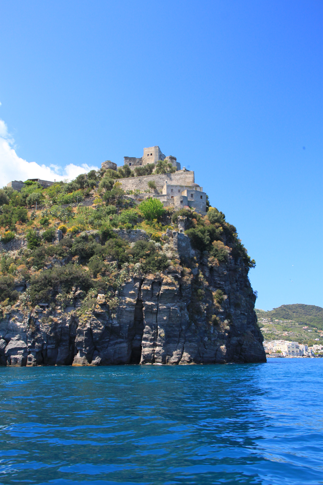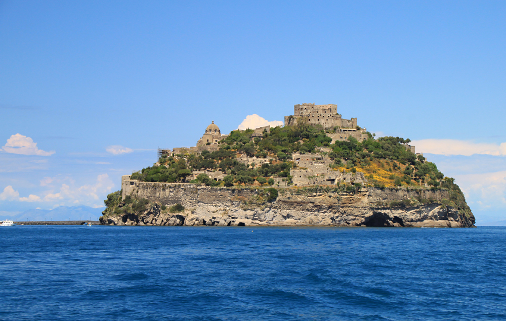 Замок находится на маленьком островке возле Искьи, к нему построен мост.