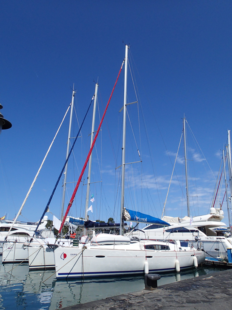 Возвращаемся в марину. Наша «Дама» стоит с самого края. Хорошо выделяется среди похожих яхт красной обмоткой стакселя.