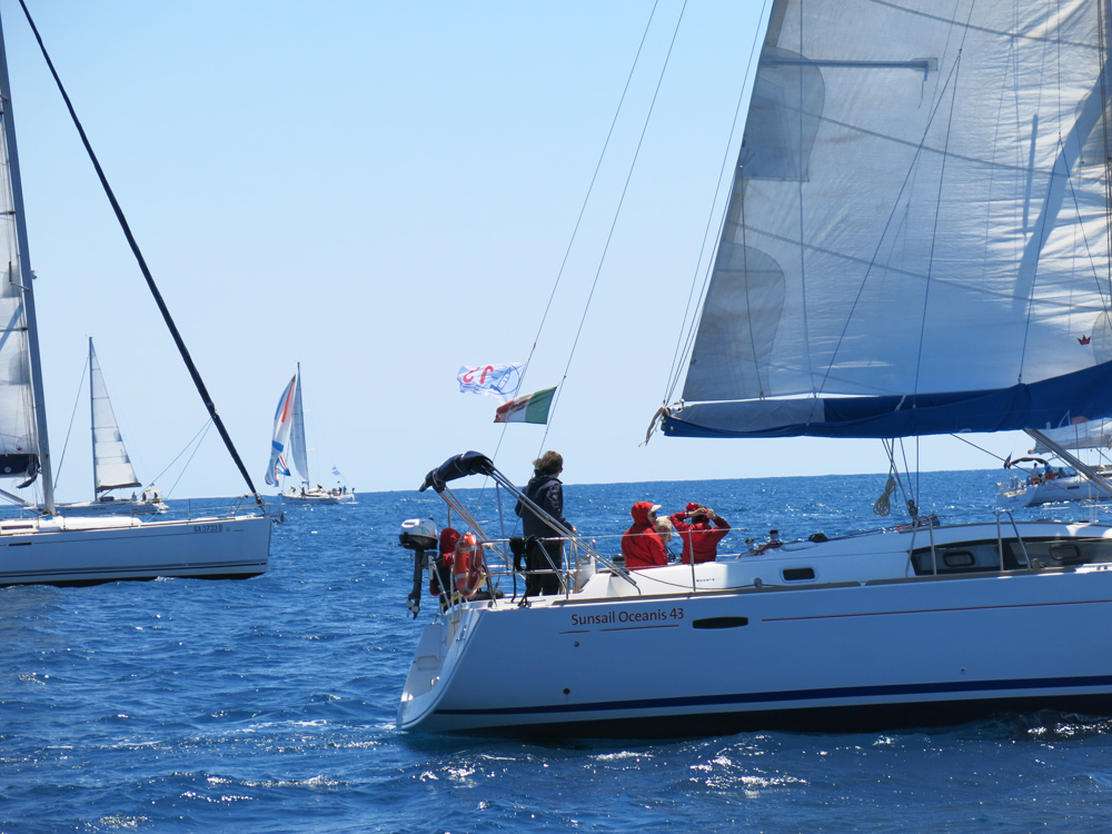 А после нам предстоял следующий этап — переход под парусом в 40 морских миль до Гаэты. Конечно, в один день не надо было ставить и мильную гонку, и переход. Потому что светового дня на это не хватило. Или выходить надо было раньше.