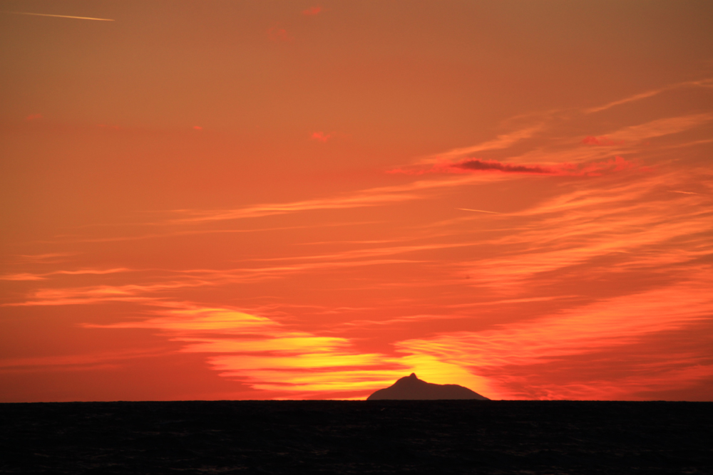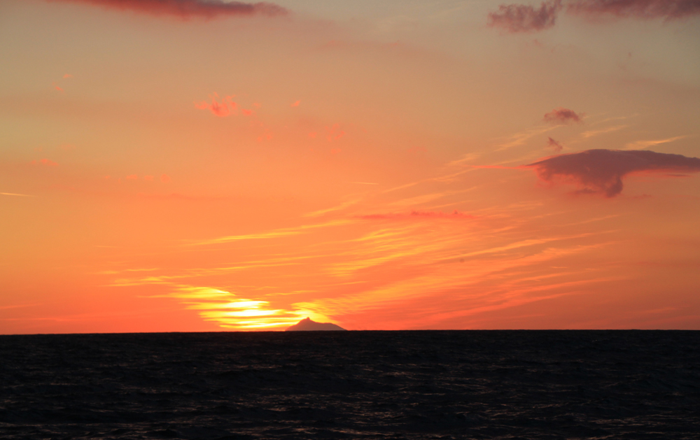 Встретили в море закат. На горизонте был виден неизвестный остров.