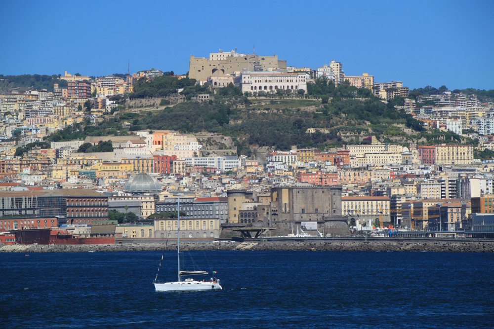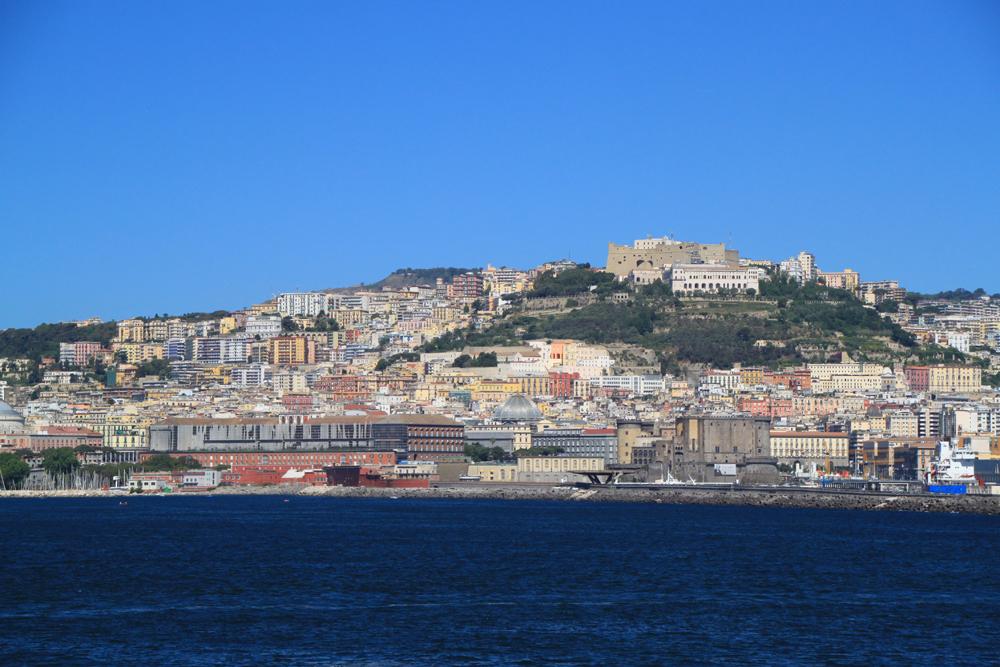 Мы с Раном возвращаемся в Неаполь. Вид на город с воды.