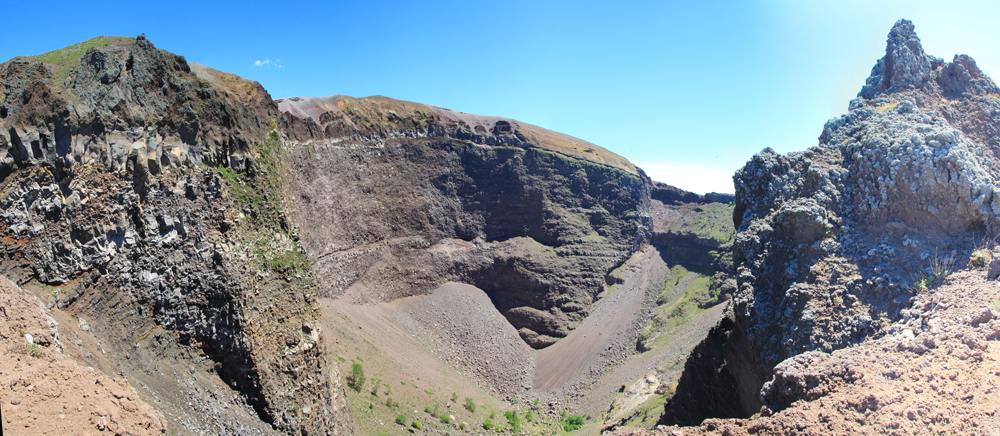 Оставив вещи на вокзале в камере хранения, на ободранной пригородной электричке мы доехали до Геркуланума. Там есть туристический автобус: за 10 евро он везет до кратера и обратно, еще 10 евро берут за вход.
