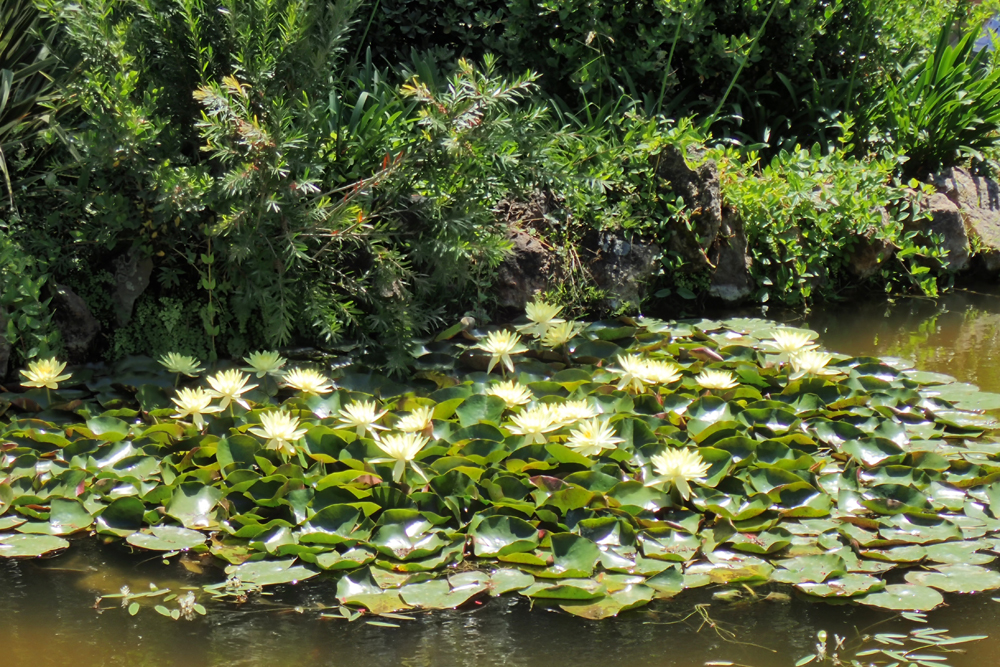 Эти нимфеи ярко-желтые, но засветка помешала.