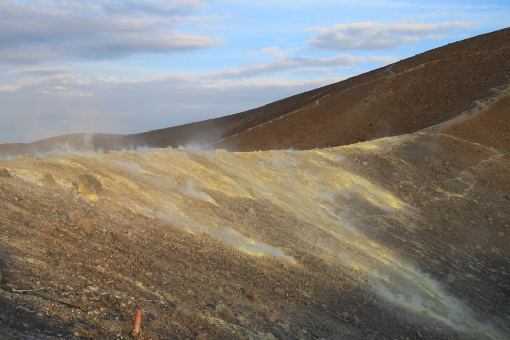 Серой снизу пахнет терпимо, а возле кратера уже ест глаза и саднит в горле, так что долго не постоишь. Саморегуляция туристов естественная :-))