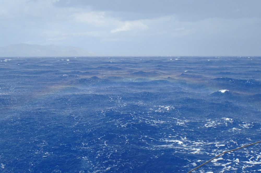 Но главное, главное-то — наша «Соня» разошлась в галфвинд на идеальном ветре в 15 узлов и прямо-таки летела 6 узлов, разгоняясь до 7 с лишним (7.9 с горки). Волны были не сильные и не тормозили ее, мы комфортно ехали, жуя по дороге бутерброды и не страдая от качки.