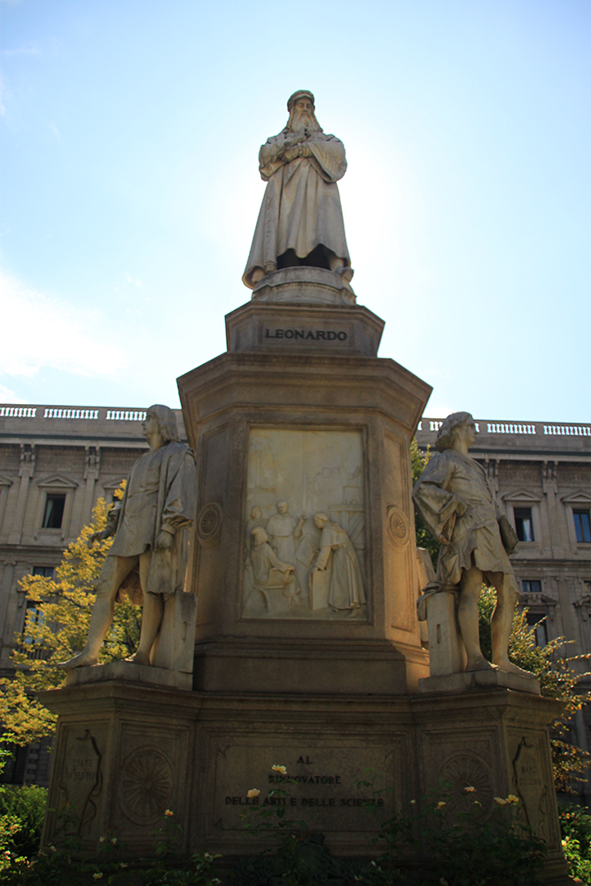 Памятник Леонардо да Винчи. Увы, против солнца.