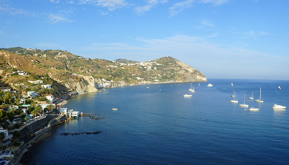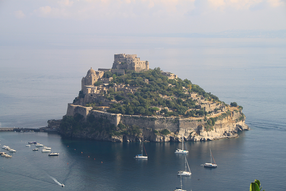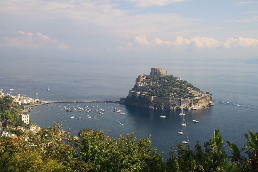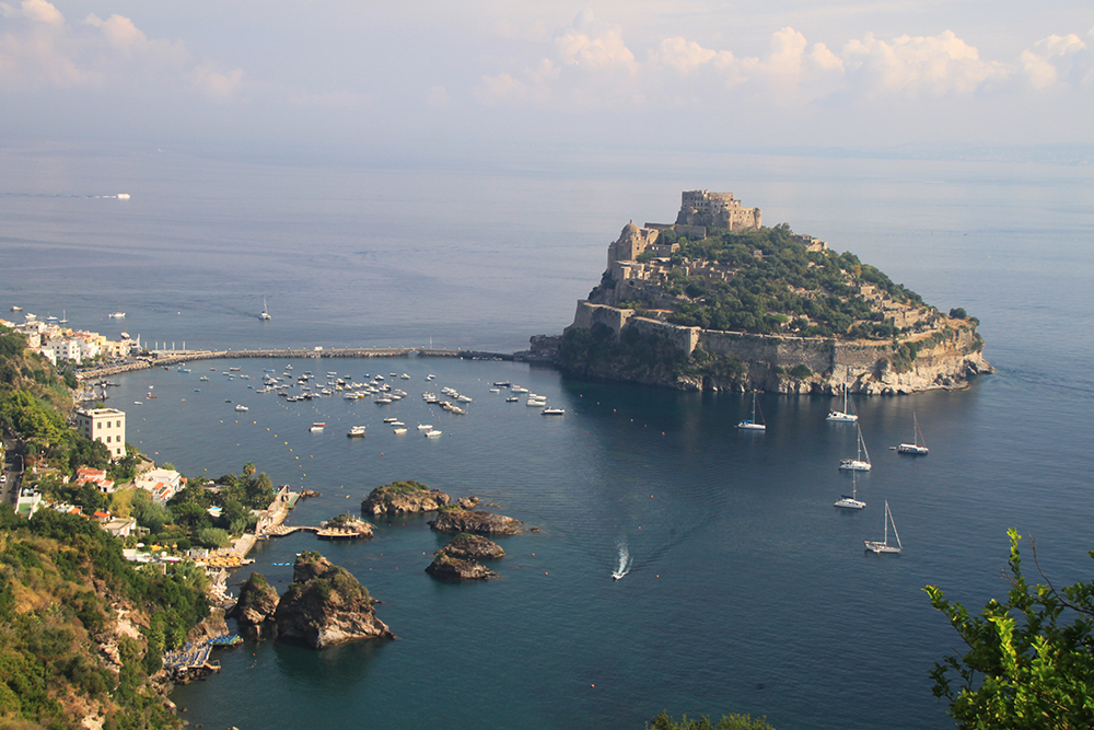 Спуск к Искья-Порто, виды на Арагонский замок.