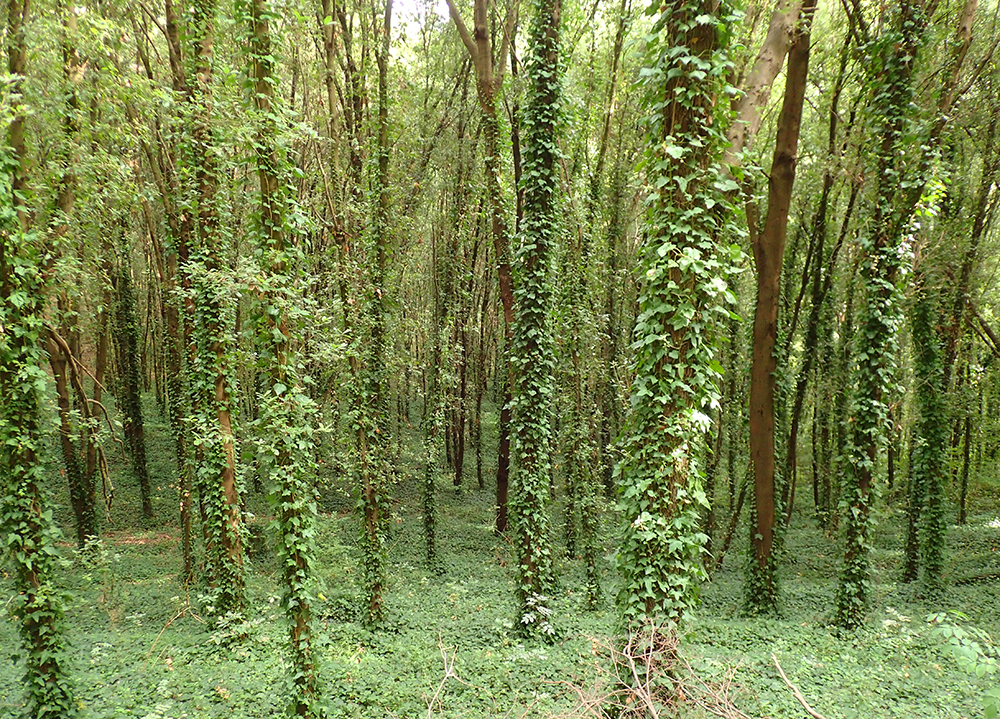 Один поход у нас был грустным. Решили прогуляться по лесу Боско делла Маддалена, но все прекрасные некогда пинии этого леса погибли из-за короеда. Одни сухие стволы торчат, а местами уже и упали. Из-за этого большая часть дорожек непригодна для ходьбы. Дубовый лес с плющом вокруг кратера чувствует себя хорошо.
