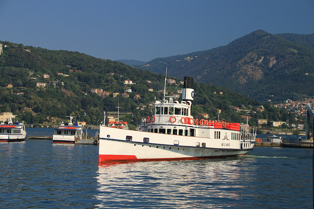 Озеро Комо вытянуто в длину. Паром останавливается в основных городках и совмещает транспортную и экскурсионную функции.