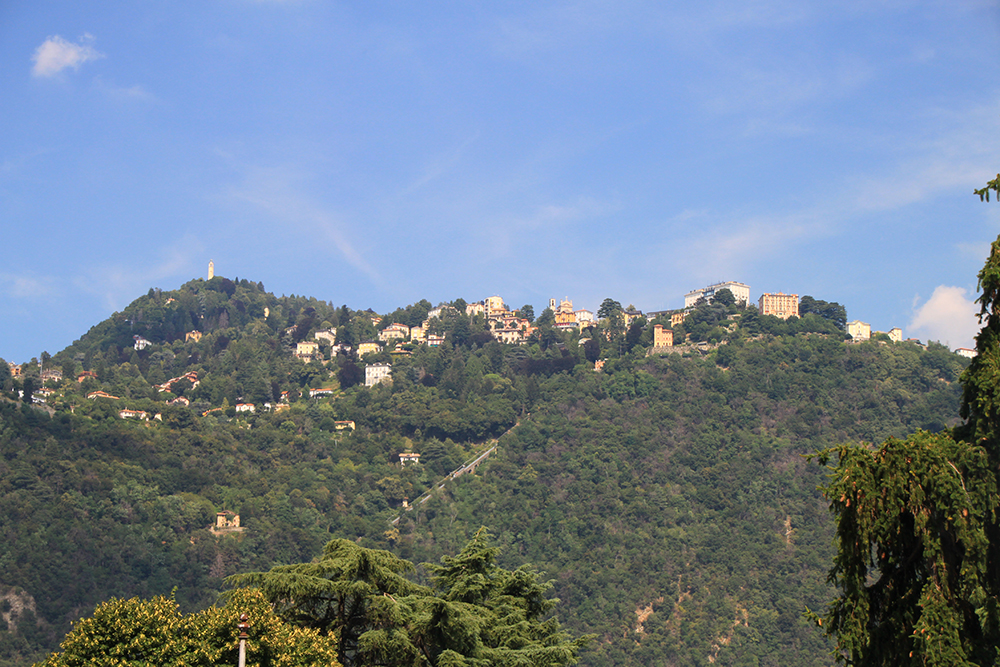 Наверху чуть прохладнее, видов у конечной станции фуникулера нет. Зато есть тропы от деревни Брунате к маяку и источнику, где виды на озеро есть.