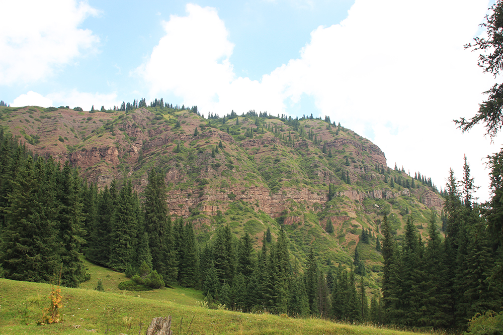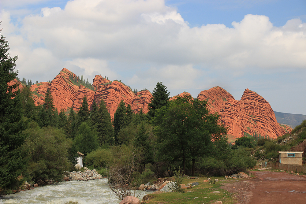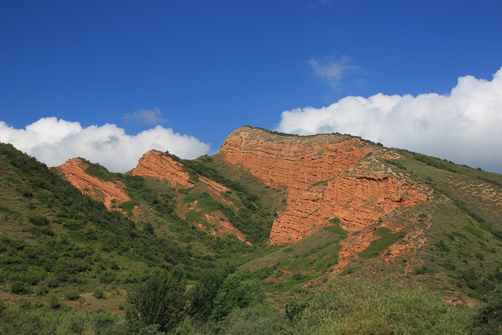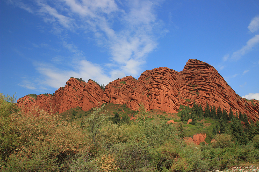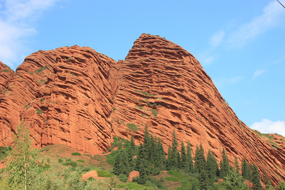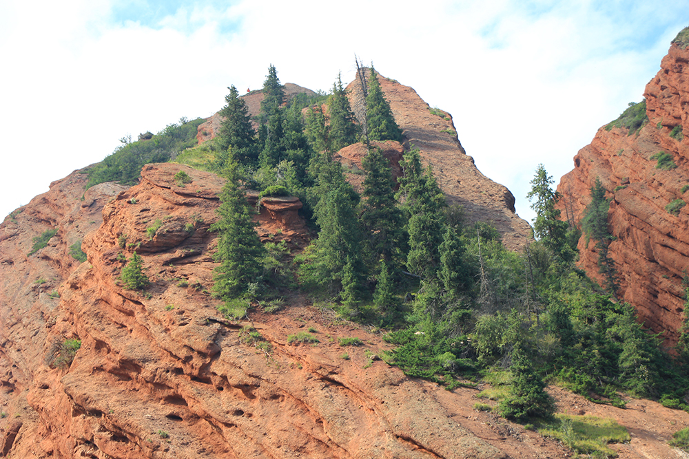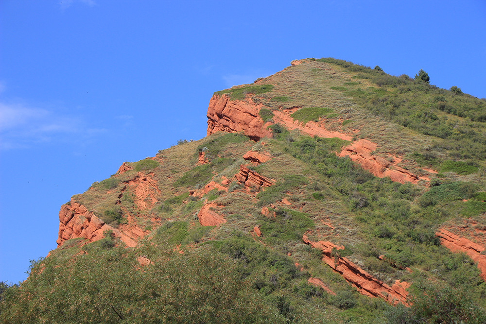 В Киргизии время от времени можно встретить выходы таких вот красных скальных пород.