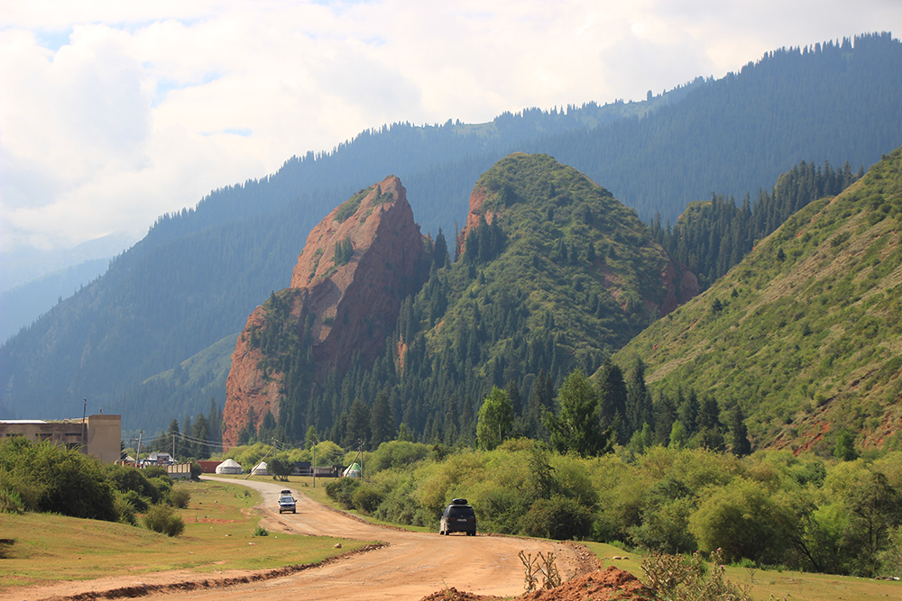 Ездили мы в это ущелье от Каракола на арендованной машине. От города до ущелья 32 км, до скал проложен асфальт.