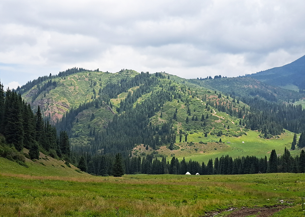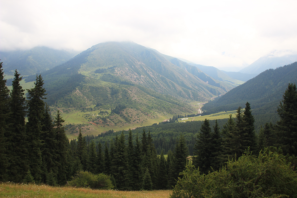 На обратном пути попали под небольшой дождь, походили в плащах, но быстро вышли из тучи. Ниже по ущелью было сухо.