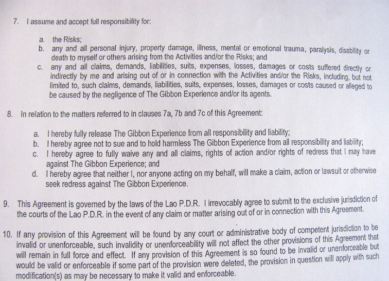 Далее мы подписали чудесный документ о том, что во всем, что будет происходить с нами в джунглях, виноваты только мы. Вот выдержка:
