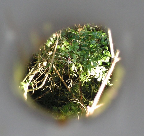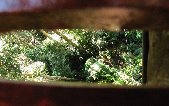 Попытка сфотографировать то, что меня так завораживает в душе. Это решетчатый пол, через который внизу виден лес: