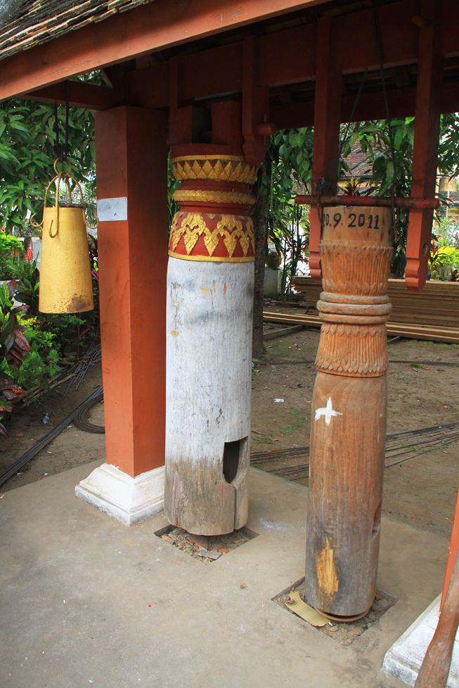 А это ... деревянные колокола. Мы нашли где-то било и стукнули. Звук глухой, но вполне колокольный, удивительно.