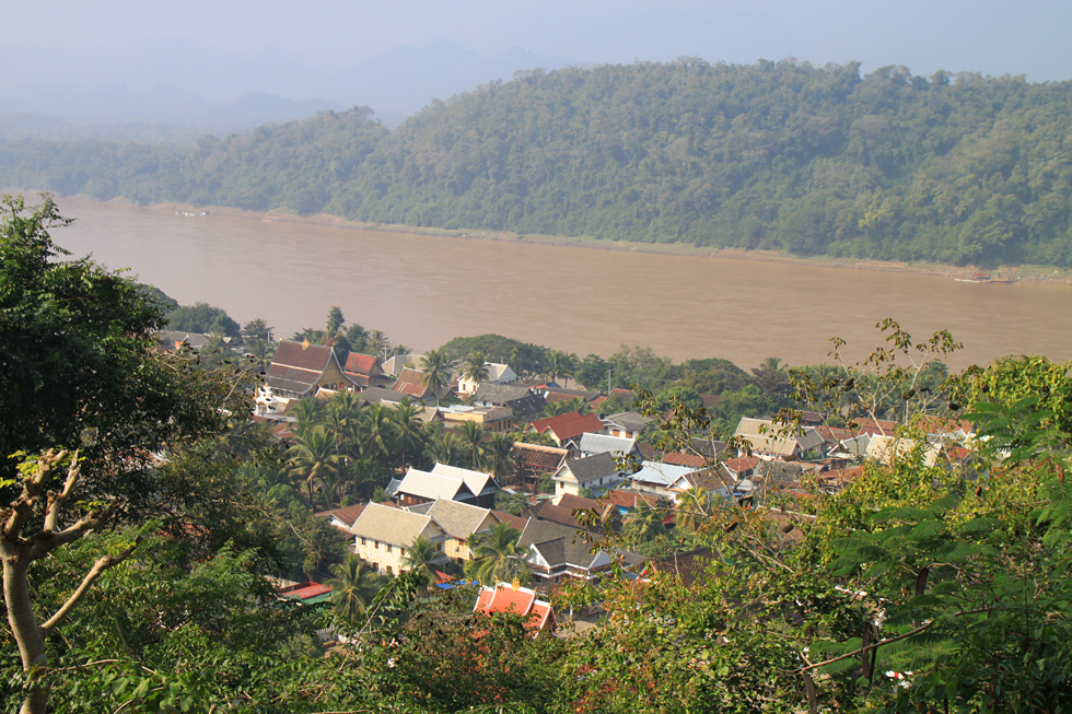 А с самого холма открывается вид ничем не примечательный, на желто-коричневый Меконг и крыши домой.