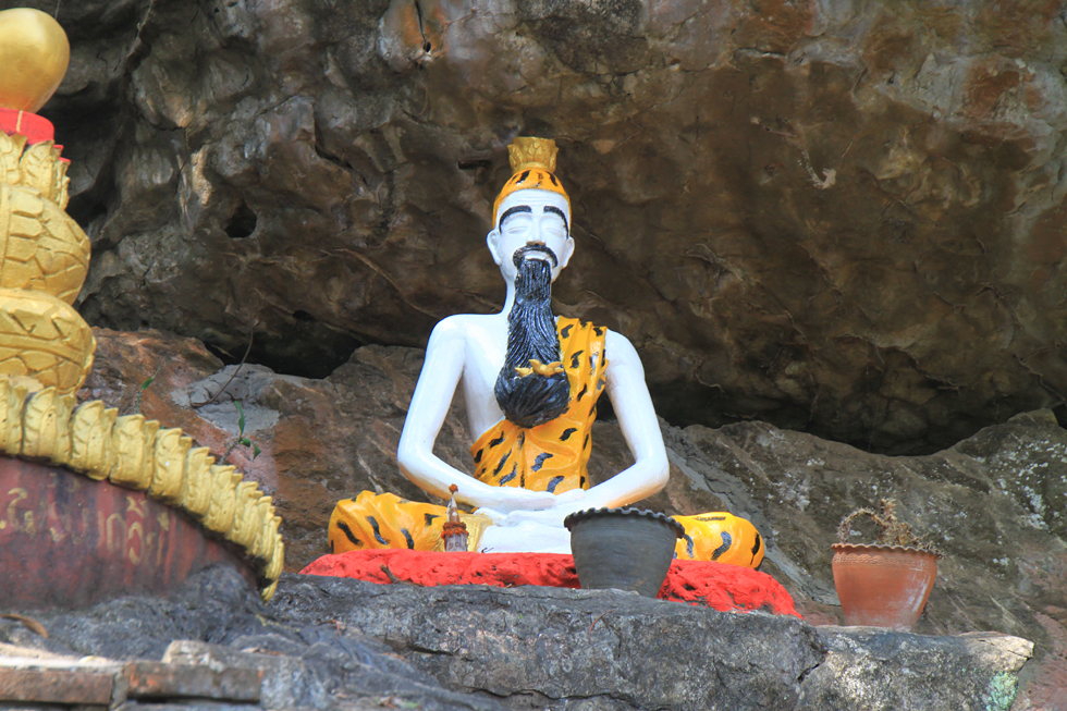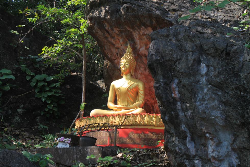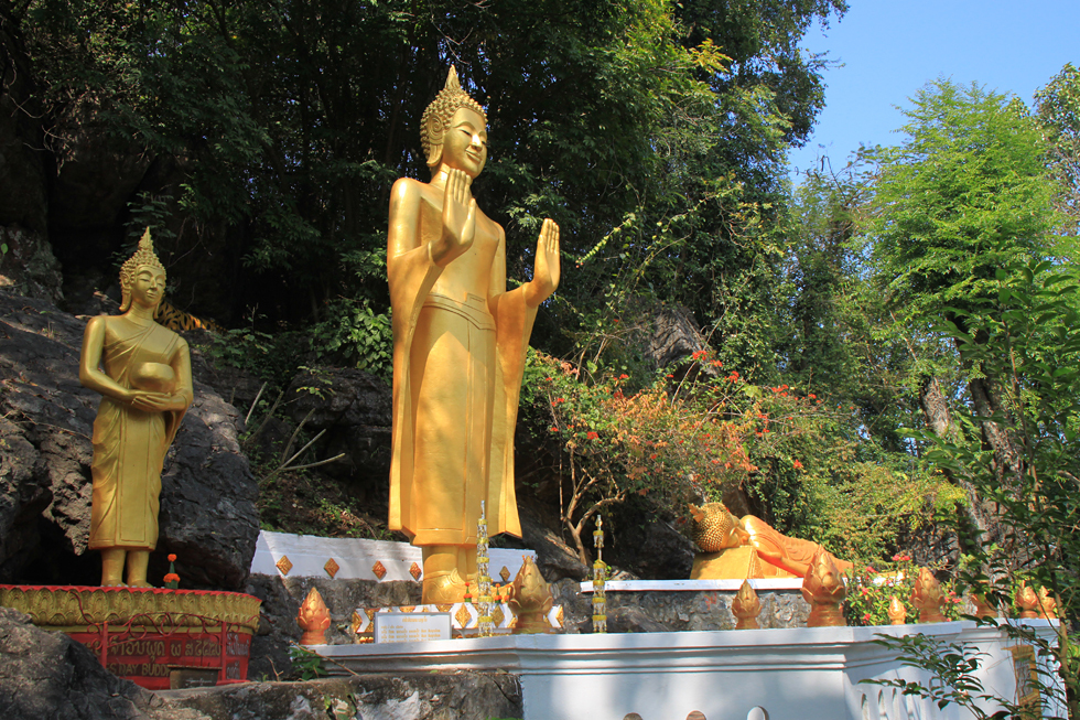 Зато если спускаться с холма сзади, там вписанные в пейзаж статуи и небольшая пещерка с буддами.