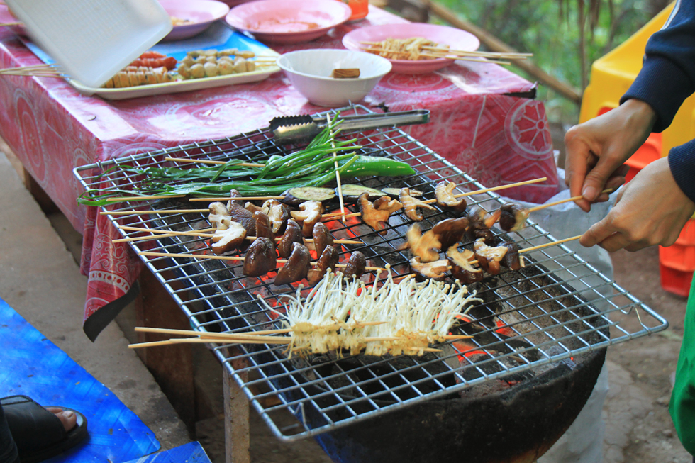 В Ванвьенге попробовали такие, они входили в набор барбекю. Лаосцы любят шашлычки с мясом и овощами и неплохо их готовят, как мы впоследствии убедились. У них есть специальные большие керамические горшки, которые продаются на рынках. Туда кладут готовые угли, поджигают, сверху кладут решетку, а потом устраивают шашлыки на небольших деревянных палочках. В меню это называется по-разному, иногда «BBQ», иногда «сотэ».