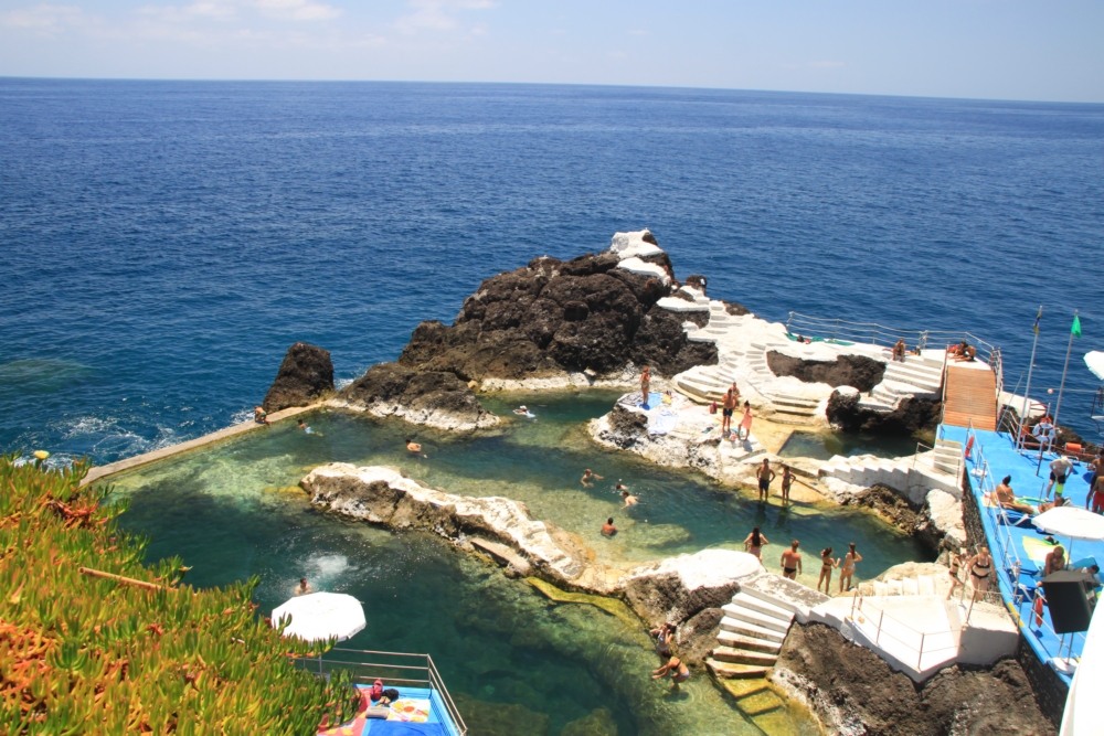 Любителям пляжного отдыха лучше поехать в другое место. Песчаных пляжей на Мадейре почти нет и суровый Атлантический океан со всей силы бьет в крутые лавовые утесы. Да и вода совсем теплой не бывает. Но возможность искупаться есть практически в любом поселке. Где-то строят защитные молы, за которыми можно уберечься от волн. А где-то лавовые выходы в море обрамляют бортиками и получается такой природный бассейн прямо в океане. Иногда такие комплексы платные (5 евро), тогда будет душ, все удобства и лежаки. Но бесплатных вариантов хватает на всех. В середине июля вода здесь где-то +20–+22. После треккинга купание очень освежает. Наш фаворит — лавовые бассейны в Порту Мониш.